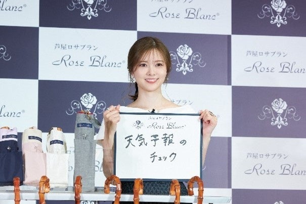 芦屋ロサブランの100%紫外線カットの日傘にちなんで「白石さんが日々の生活で100%していること」について聞くと、「天気予報のチェック」と意外な回答が!「当日の朝だけではなく、前日の夜も必ず天気予報のチェックをしています。事前に天気や気温にあわせて服装や持ち物を準備するタイプです。」と慎重派な一面をのぞかせました。