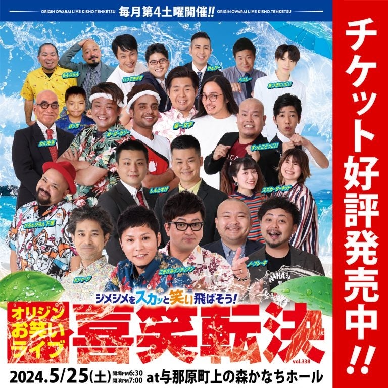 毎月第4土曜日開催のオリジンお笑いライブ「喜笑転決」のパブリックビューイングを、「i-Base」で開催される定期イベントとして、次回2024年5月25日(土)の「喜笑転決Vol.338」より実施いたします。