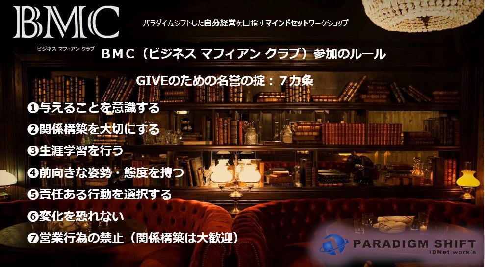 本講座の最大の特徴は、『志の高い仲間と共に過ごすことによる個人の成長と意識改革』です。リファーラルマーケティングについて学べる教材というのは豊富にあります。BMCが他と異なるのは、ただリファーラルマーケティングについて学べるだけではないということです。
