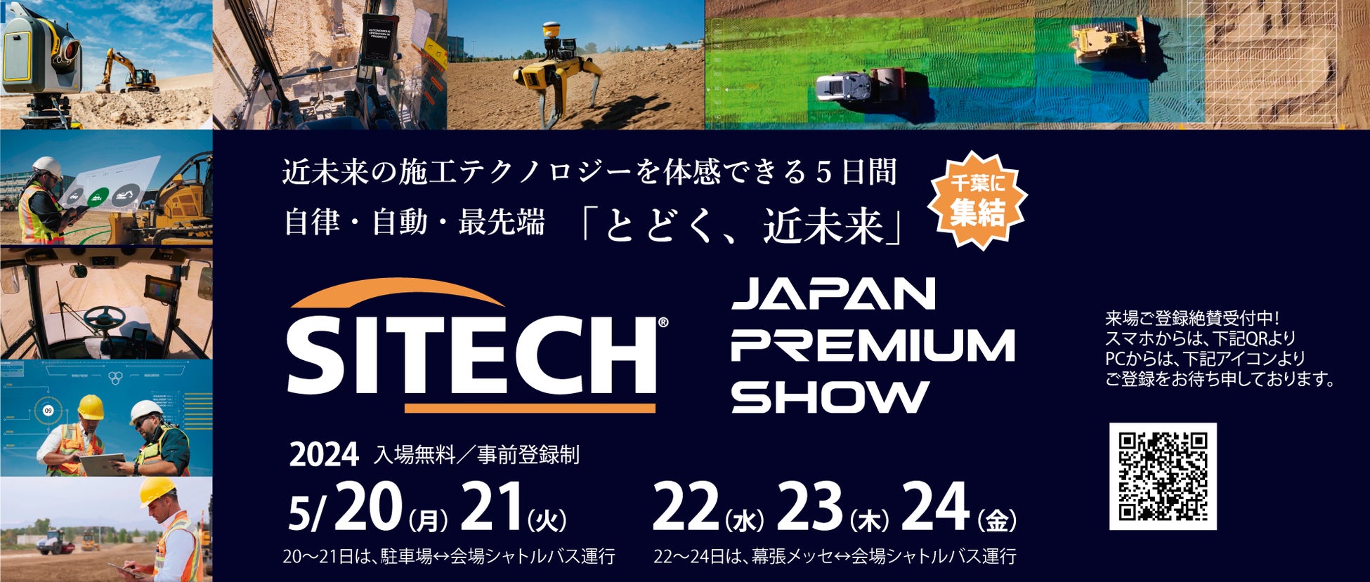 現在の建設業は、i-Constructionの推進が進んでおり、現場のデジタル化、建機のMC化の推進のスピードは一層早くなっています。サイテックジャパンは、現場の生産性向上のお役に立ちたい一心で現場のサポートとサービスのご提供に邁進しております。今般、「とどく、近未来」をテーマに、最新の技術を見て、体感できるイベントを『サイテック プレミアムショー』として開催する運びとなりました。「近未来」として、最新の自律施工バックホー、自動操舵ローラとドーザー等のリリース前の実機も集め、デモンストレーションを行います。また、「今」として、点群データ、測量機データ、建機データ、人材データを統合し現場のDX化を支援する「サイトオーケストレーション(Sオケ)」を発表致します。測量機、建機ICTをトータルで提供しているTrimbleによる現場の『近未来と今』を体感できるイベントです。