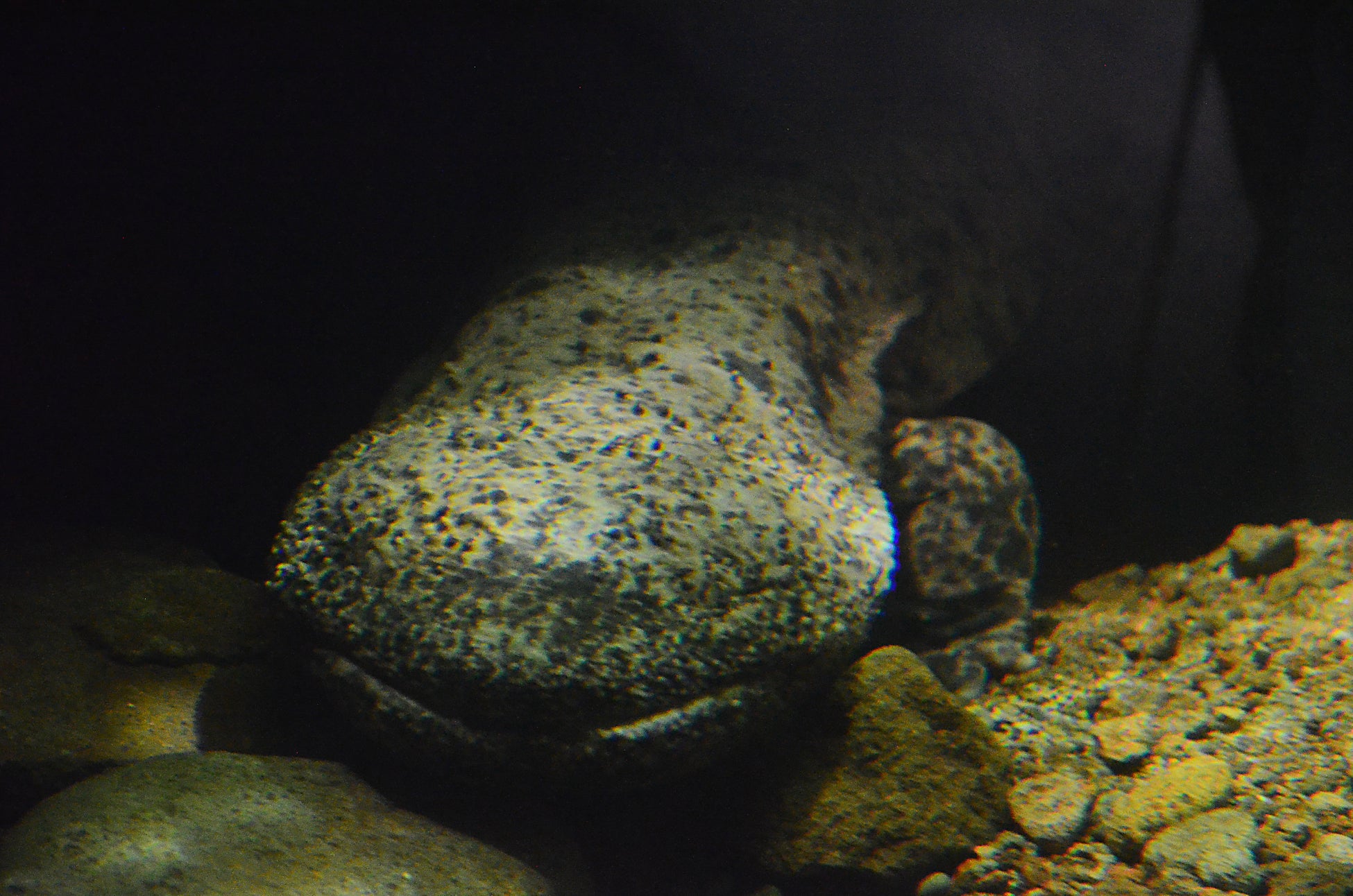 最後には、メイン水槽 赤目四十八滝最奥部に位置する岩窟滝を再現した 「岩窟滝水槽」 を見ることができ、その水槽には国の特別天然記念物であるオオサンショウウオと共に、滝に生息している魚類を同時に展示しており、オオサンショウウオの魚を待ち構える姿、岩棚に身を隠し川底の砂に擬態している姿を観察することができる行動展示を行っています。