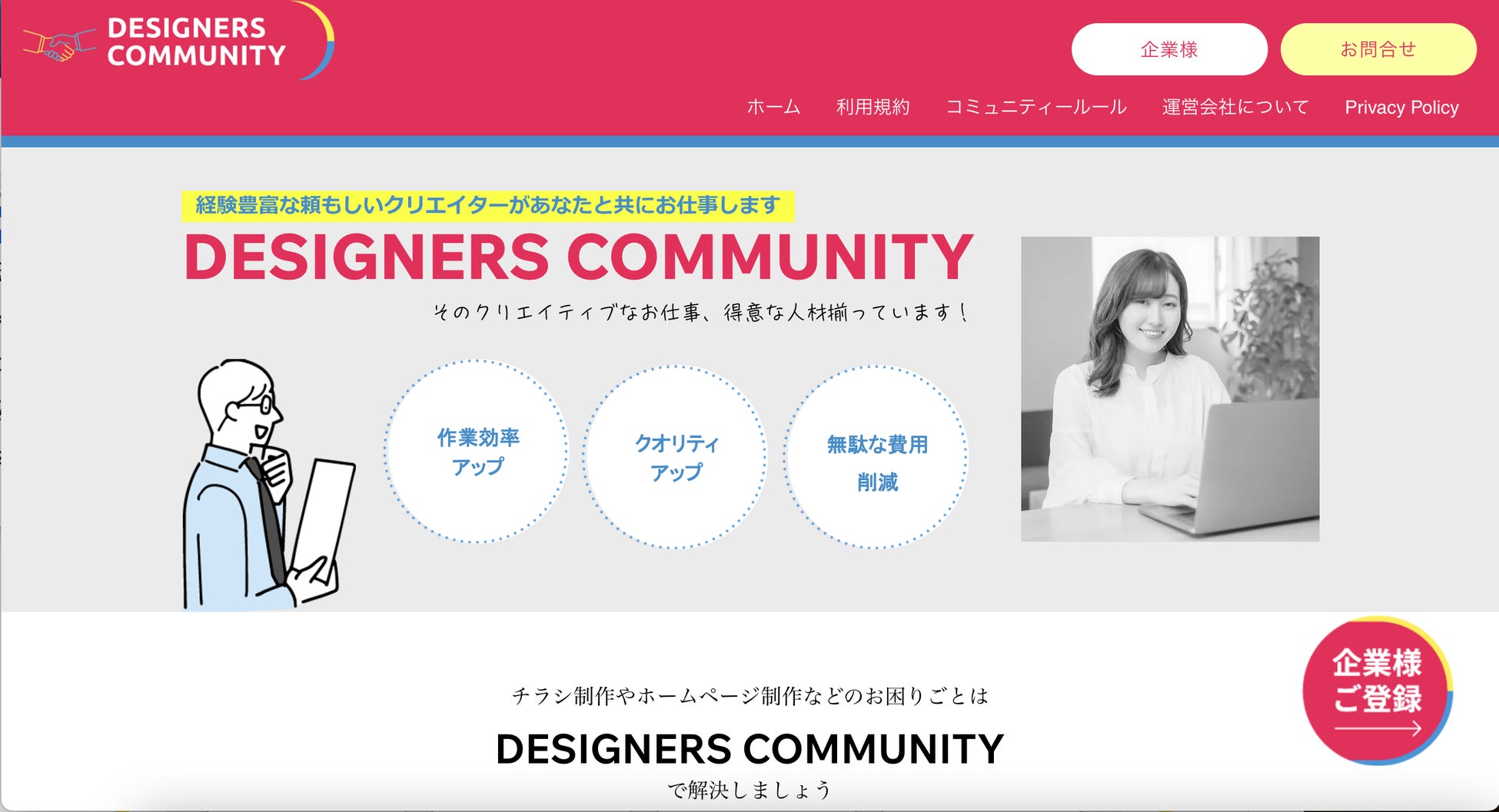 フリーランスクリエイターと制作案件をつなぐ半クローズドプラットフォーム「DESIGNERS COMMUNITY」を本日リリース