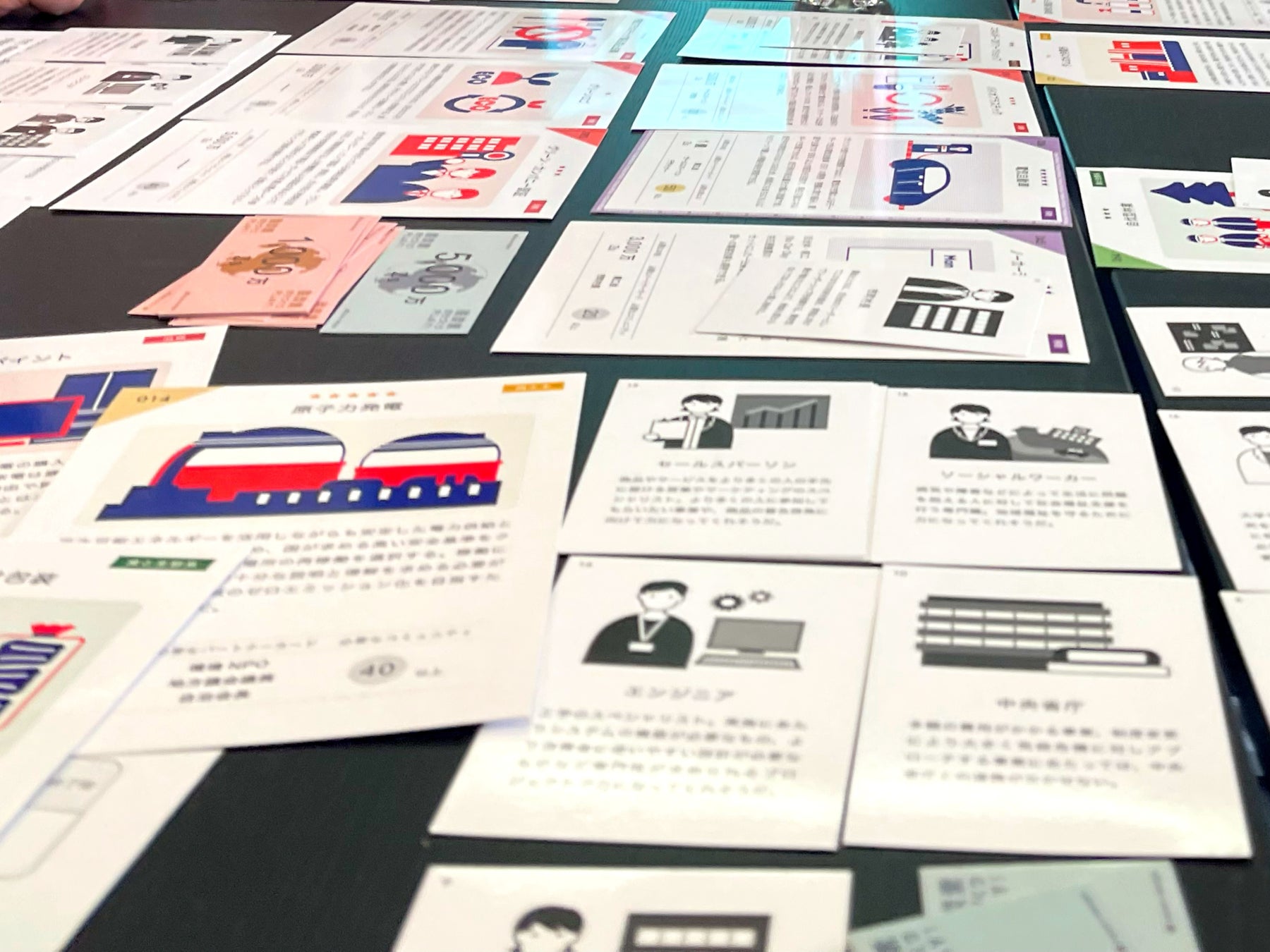 参加者は一つの町の住民として、3種類のカード、「プロジェクト」「人材」「資金」を使用して、実際に起こりうる気候危機を予防し、町のCO2排出量を削減するゲームに参加します。