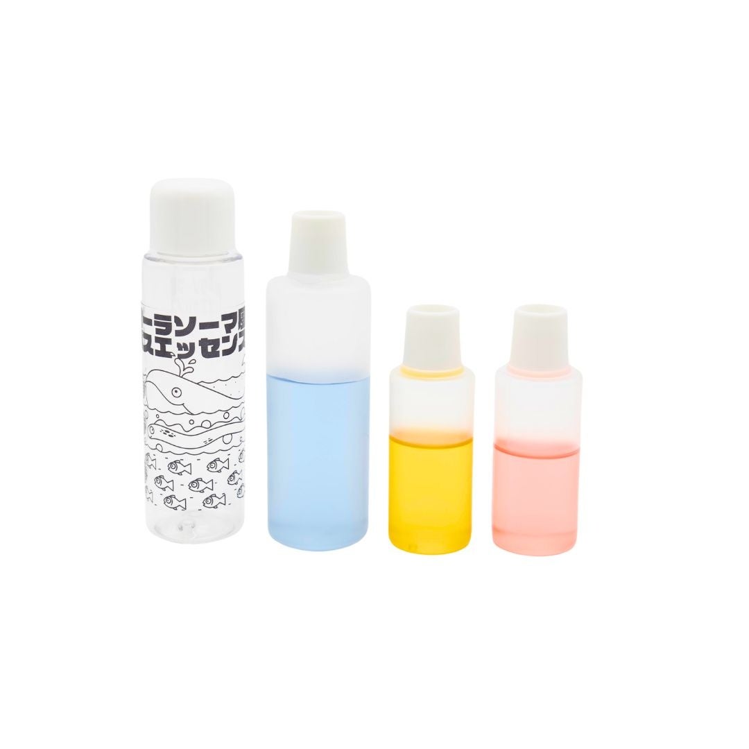 ・空ボトル(メモリ入り)×1本 ・青い液の入ったボトル(水相)×1本 ・赤い液の入ったボトル(油相)×1本 ・黄色い色の入ったボトル(界面活性剤相)×1本