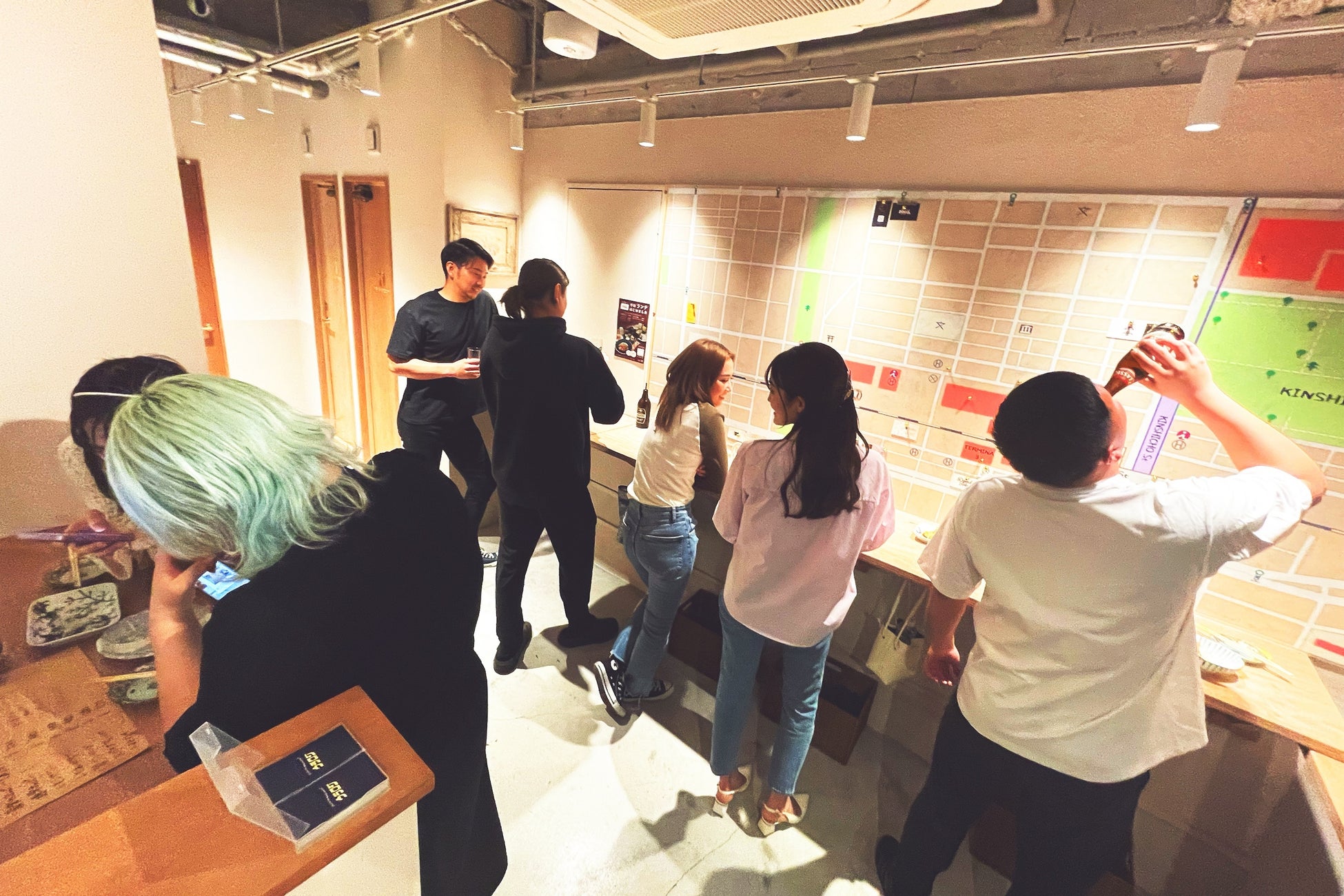 店内の壁には錦糸町のマップがあり、近隣の飲食店など、地域の情報を集めています。マップを見ながらスタッフやお客さん同士で会話を楽しむことができるのが特徴です。知りたい情報をキャッチしたり、仕事やプライベートの出会いにつながる空間になっています。