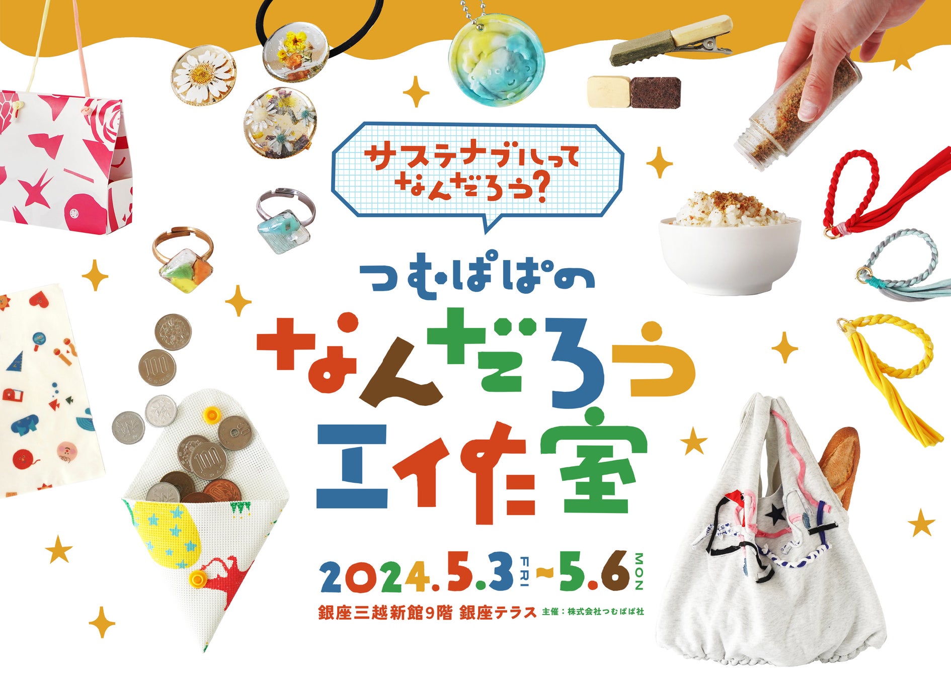 子育てファミリーを中心に、SNS総フォロワー150万人を超えるクリエイター『つむぱぱ』がSNSを飛び出し、『サステナブルに工作で楽しく触れる』がテーマの親子ワークショップイベント『なんだろう工作室』を、2024年5月3日(金)から5月6日(月)のGW4日間で銀座三越にて初開催。いま社会全体が、脱炭素社会の実現や持続可能な開発目標(SDGs)の達成に向け動いている中で、各家庭や子どもたちに向けてのメッセージやアクションのきっかけを届けます。