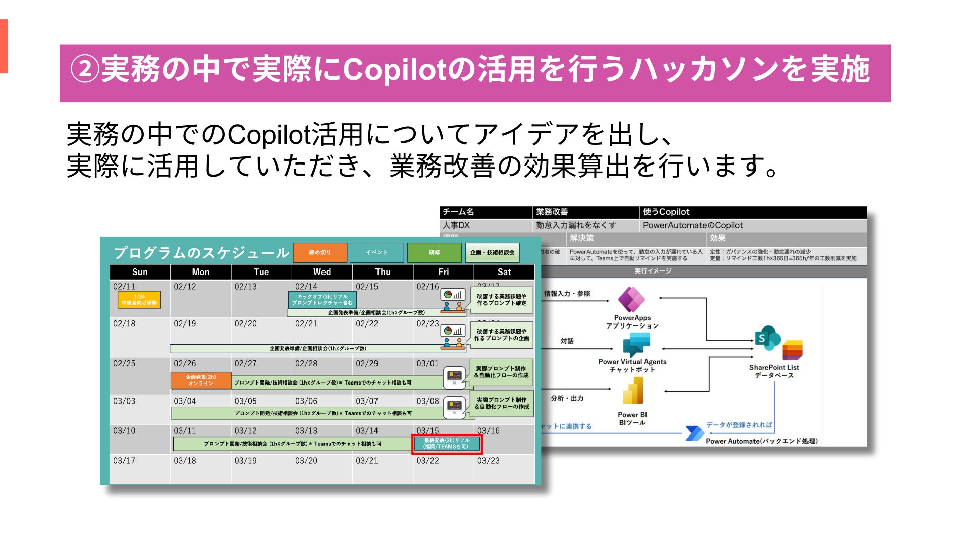 ②実務の中で実際にCopilotの活用を行うハッカソンを実施