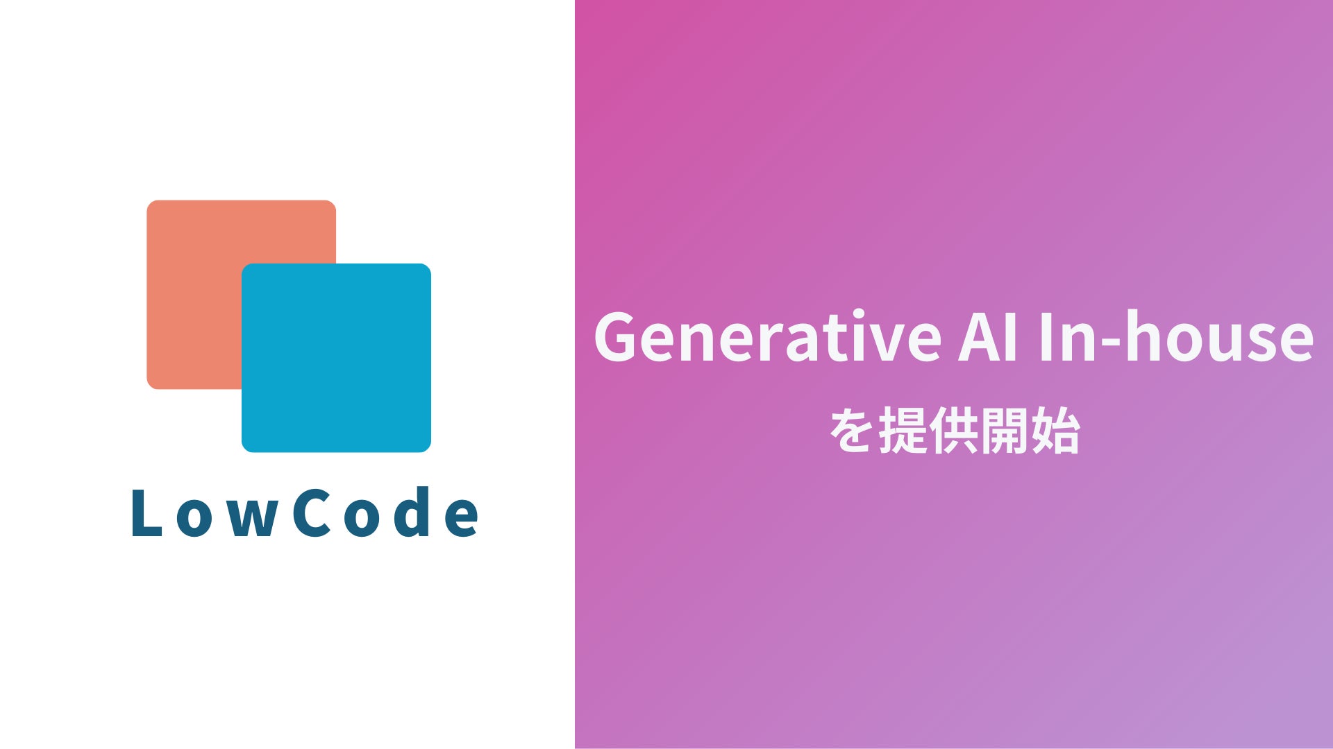 株式会社Low Codeは、研修/ハッカソン/社内コミュニティ形成を通して、社員全員が生成AI/ローコードサービスを使いこなすことを可能にするサービスを提供しています。「Generative AI In-house」を通じて、企業のDX/AI化を推進し、生産性向上と人材育成を支援いたします。