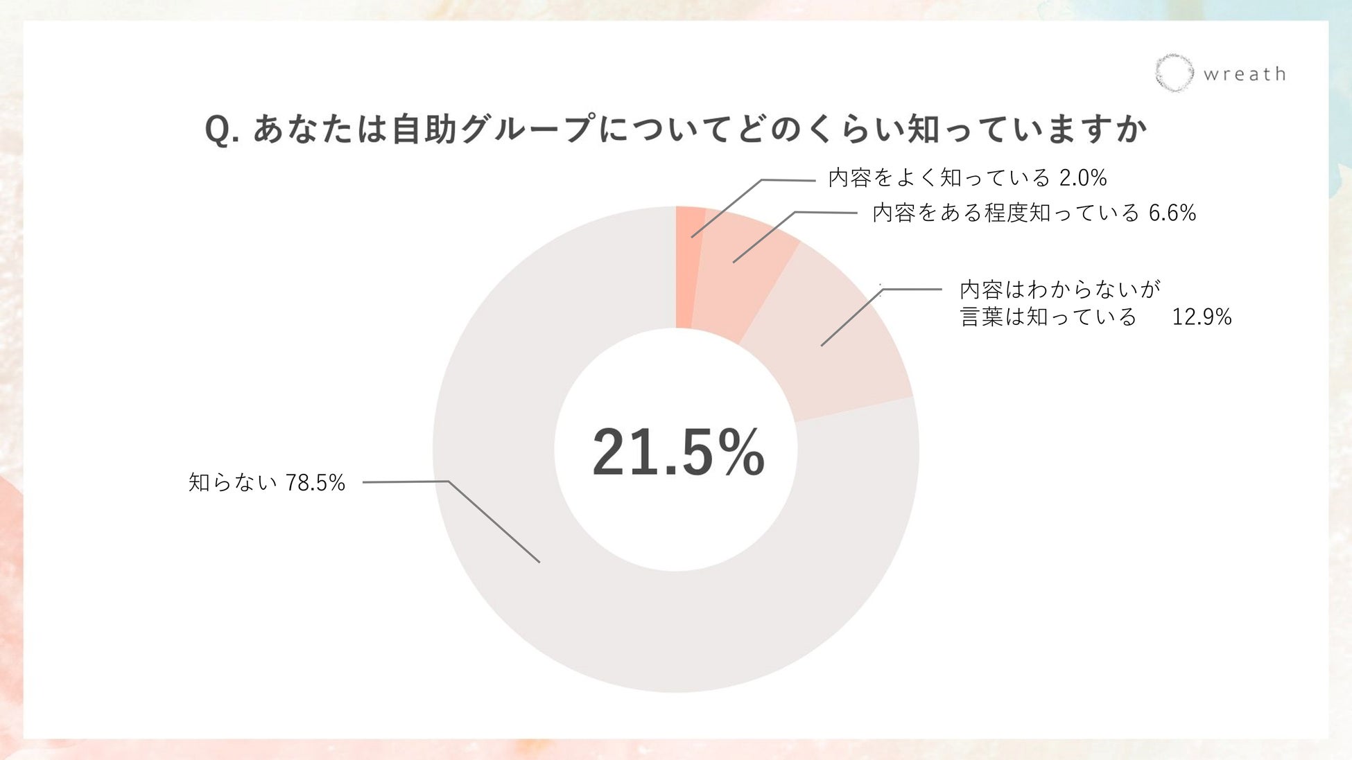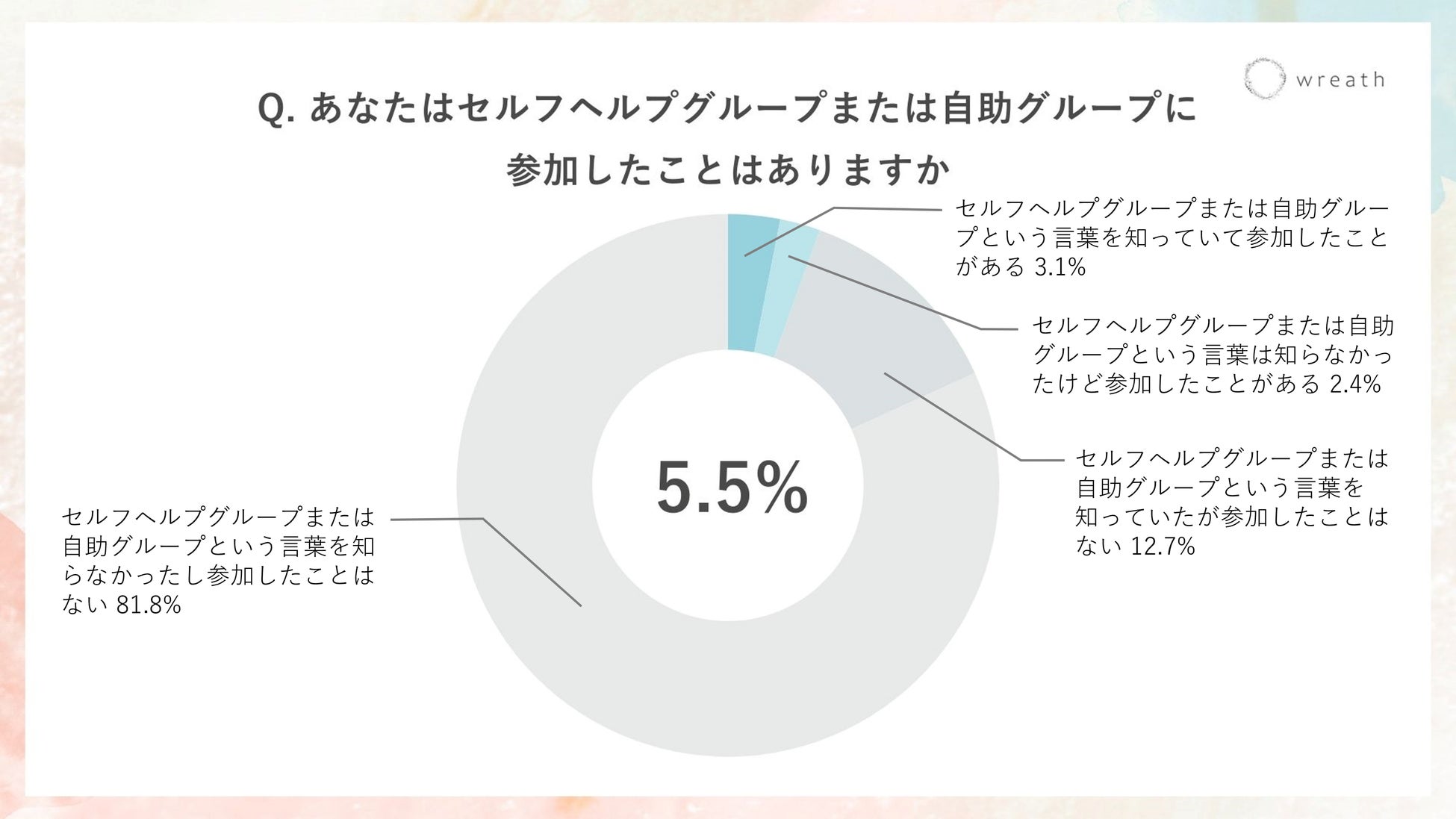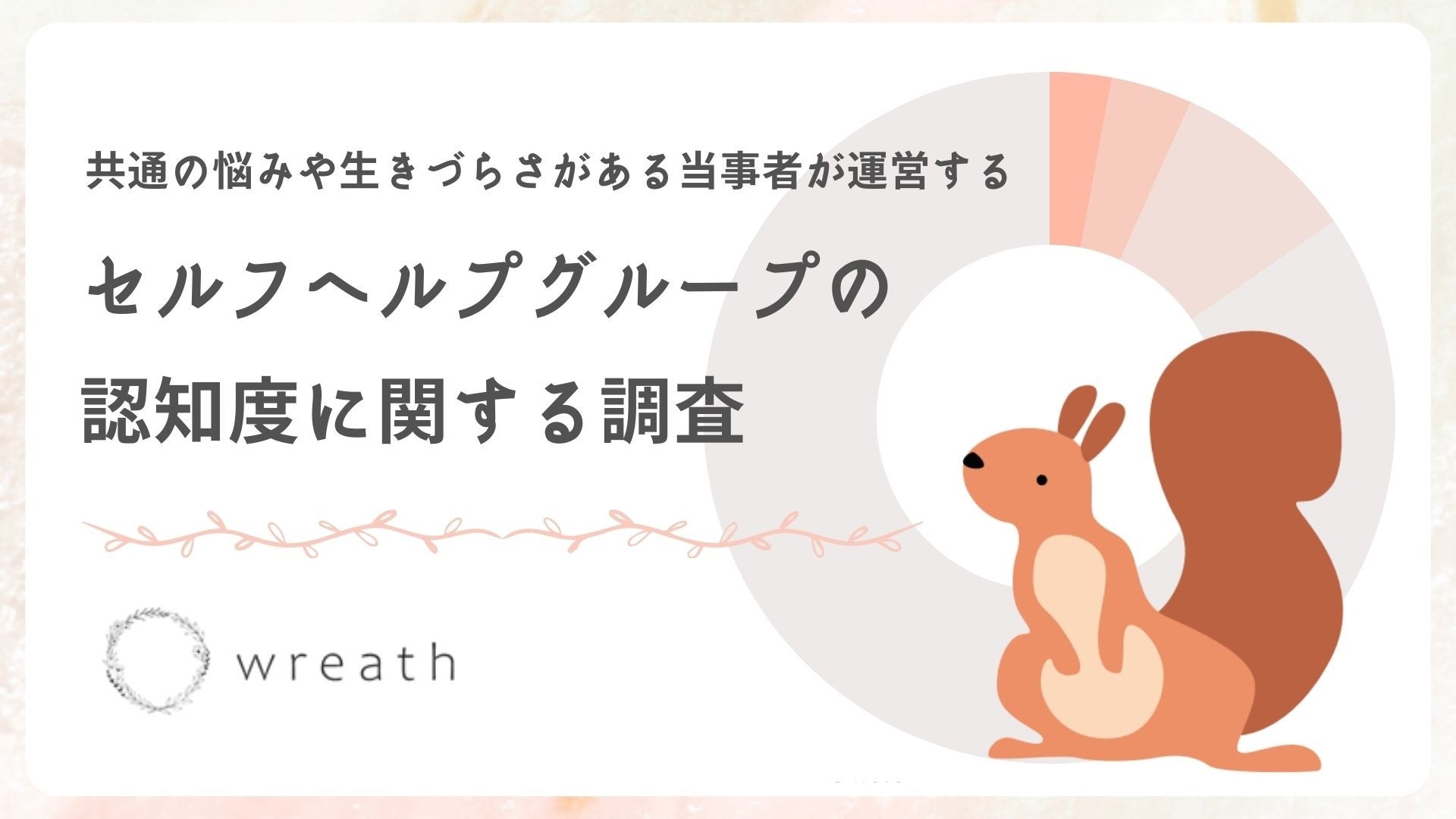 「セルフヘルプグループのプラットフォーム wreath(リース)」を運営する一般社団法人wreath(所在地:兵庫県神戸市、代表理事:下村真代)は、セルフヘルプグループ(※1)の認知度に関する調査を実施いたしましたのでご報告いたします。