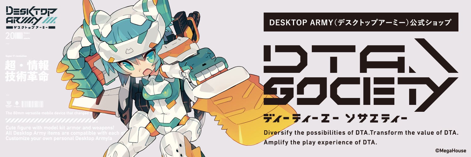 「DTA」は「デスクトップシンガー」や「デスクトップアーミーNFT」など、派生シリーズやテーマを展開しており、多様なキャラクターがラインナップされています。それぞれのキャラクターには個別のストーリーやバックグラウンドが設定されており、世界観も含めて楽しめるフィギュア商品として2016年から開発され続けています。全シリーズを含めると出荷累計90万個を超える人気可動フィギュアとなっています。