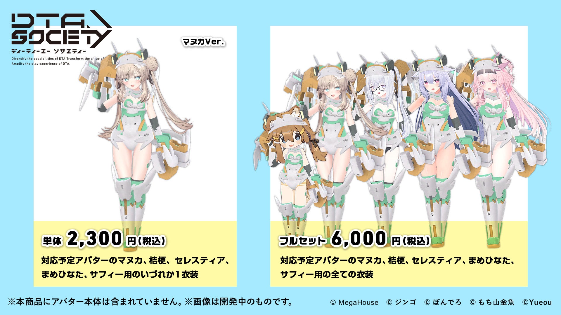 今回「DTA SOCIETY」から初めて発売するデジタルアパレル商品となります。VRChat向け3Dアバター衣装として、メタバース領域の事業をリードする株式会社V(本社:東京都品川区)協力のもと、VRChatなどのソーシャルVR / メタバースプラットフォームユーザー向けに制作しました。