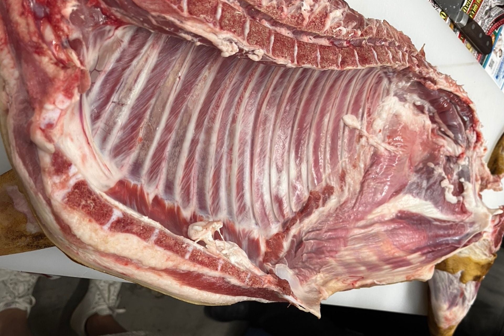 さらに、2024年からは、那覇市内で複数の飲食店を展開するインパクトグループの協力のもと、「合同会社美らヤギ」として山羊肉の卸・流通事業を本格的に始動しました。今帰仁村の「やんばる牧場」で大切に育てられたブランド山羊「美らヤギ」を1頭まるごと仕入れ、自社で受け取りから輸送・加工・洗浄・保管までを一貫して対応しています。