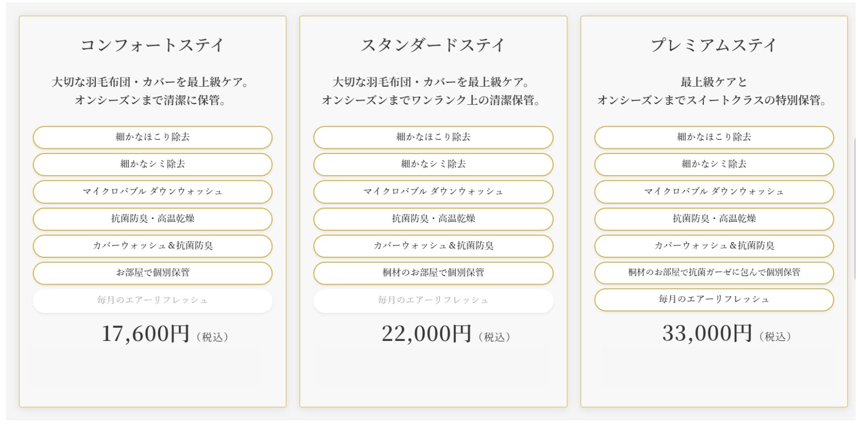 布団のホテル™︎「ロングステイ」は、プレミアム洗浄後の羽毛布団を空調管理されたお部屋で、抗菌ガーゼに包み一枚一枚完全個別保管。羽毛布団にとってストレスとなる「圧縮」や「段ボール」での保管をしないので、オンシーズンに快適にお使い頂けます。コンフォートステイ17,600円(税込)から。