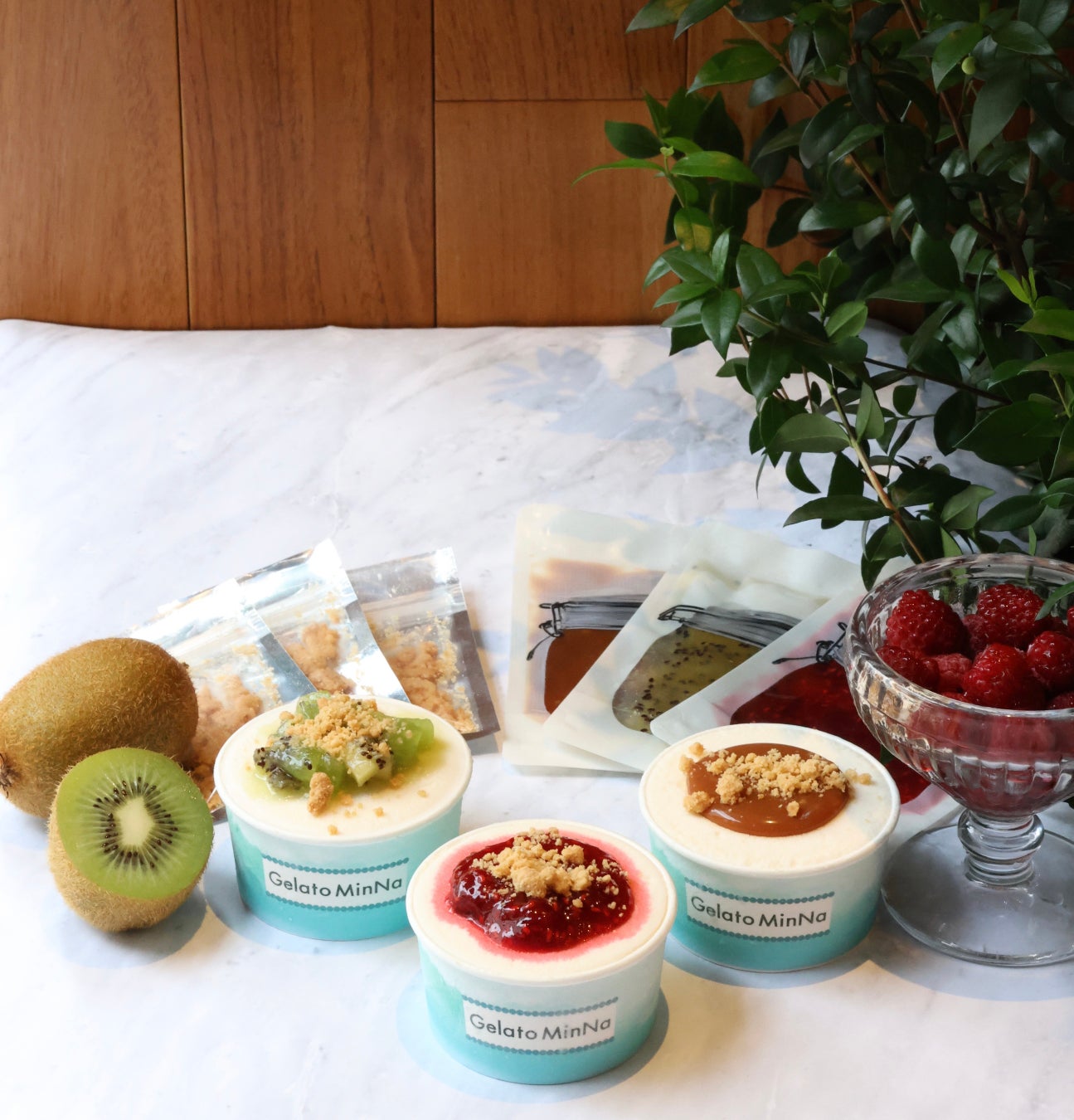 『Gelato ++』はGelato MinNaの極上クラフトジェラートに別添えのフルーツジャムやクッキーをプラスすることで完成するカスタマイズできる新しいジェラート。