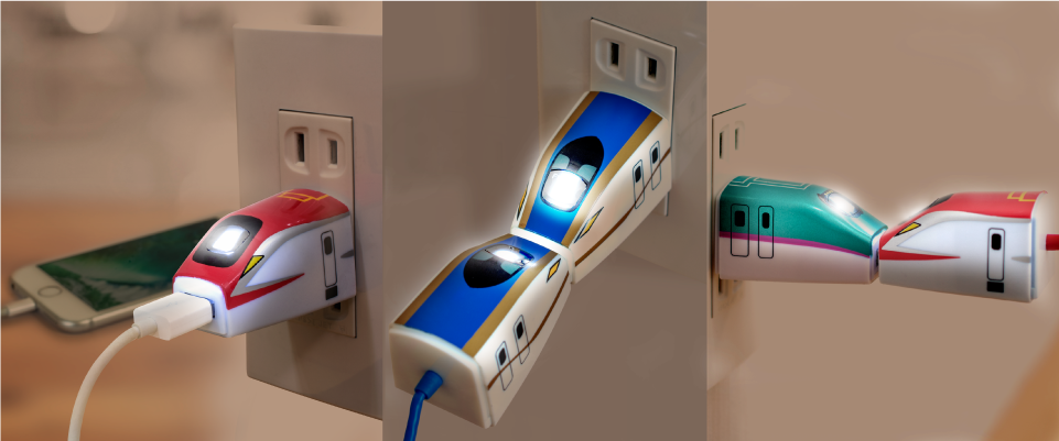 スマ鉄は「こんな商品があったら楽しいだろうな」という発想で企画・開発された鉄道車両型USB AC充電器シリーズです。