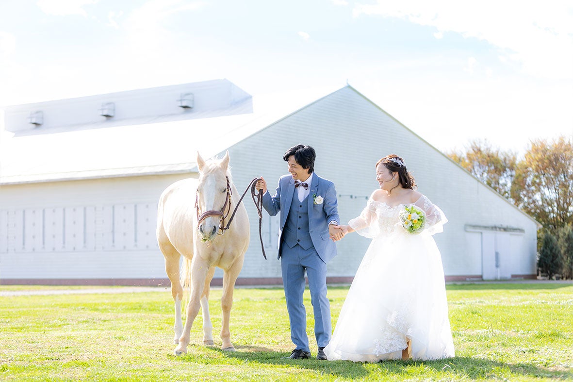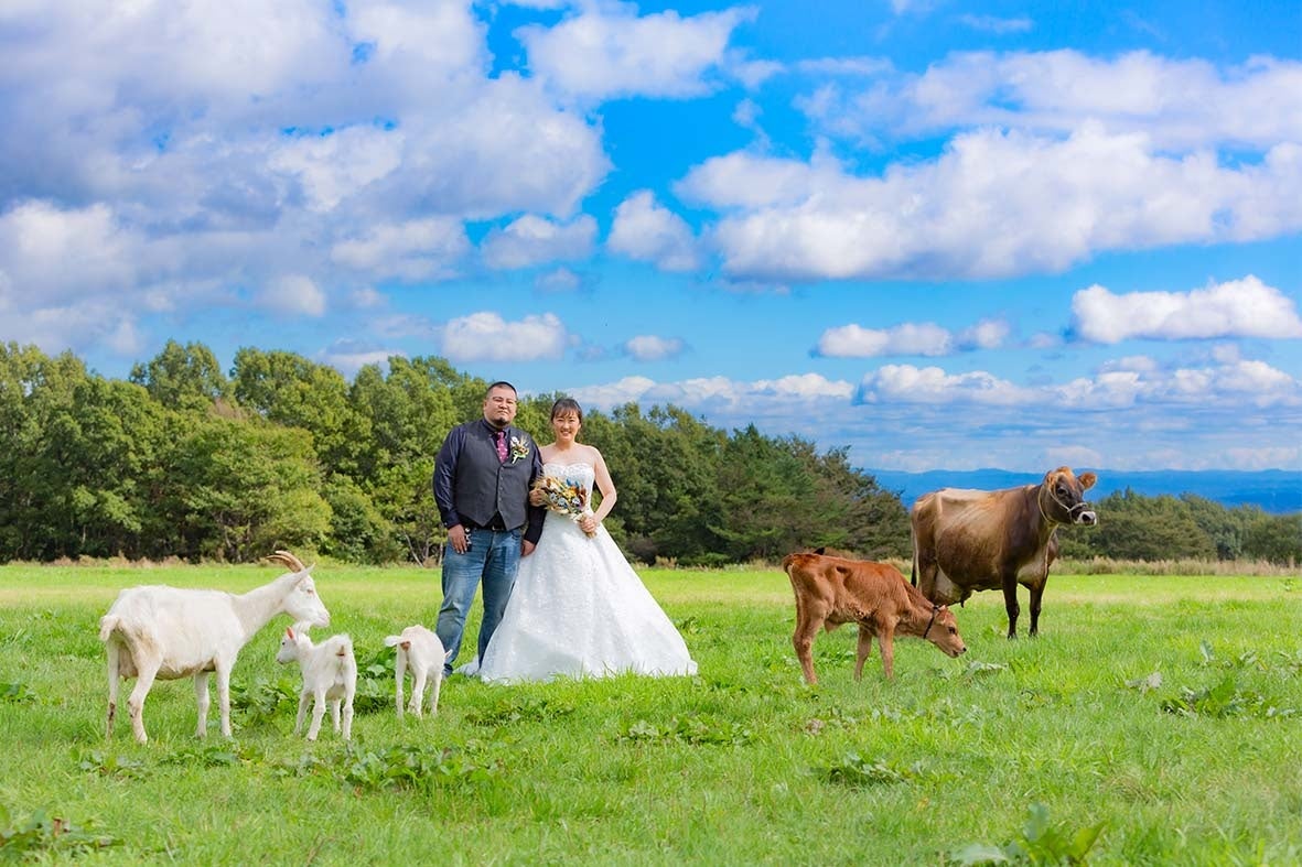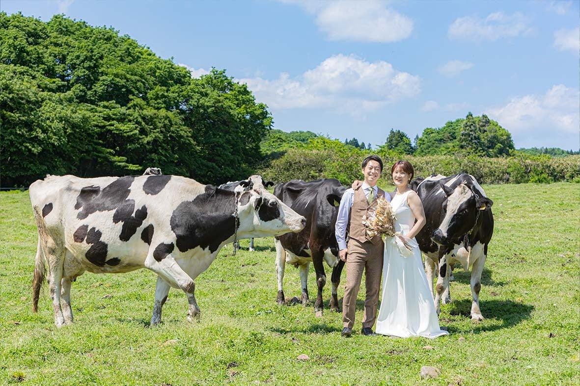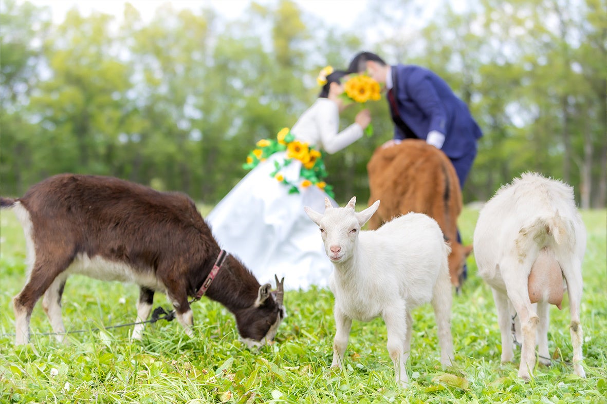 また、那須高原の伝統と文化を広め、酪農の持続可能性を高めることも目指しています。那須高原は元々酪農の町であり、時代と共に飼料の高騰や後継者不足により廃農が増えています。SDGsの取り組みとして、若い世代に酪農を身近に感じてもらい、実際に体験する機会を提供することで酪農への興味を喚起し、廃農を防ぎたいと考えています。牧場での撮影は、新郎新婦にとって特別な思い出の場所となり、記念日ごとに子供と一緒に訪れるようになります。実際、牧場で撮影した新郎新婦の7割が毎年訪れ、これにより乳製品の購入が増え、地域のPRにもつながっています。