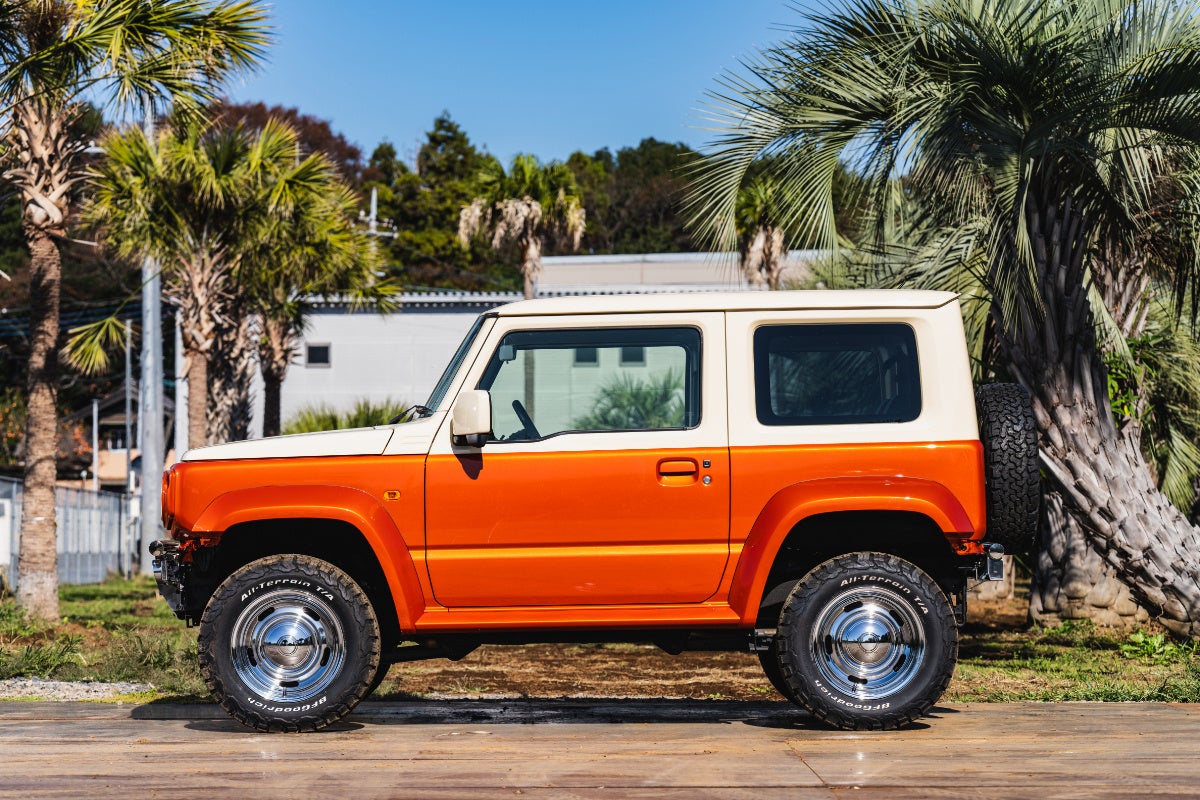 BeyondJAPANのカスタムは「飾らないし、気取らない」シンプルな美学を追求し、ジムニーの懐の深さを引き出します。スクエアなボディ形状やレトロなフォルムを活かしたスタイルは、今の時代に映える新鮮さを持っています。