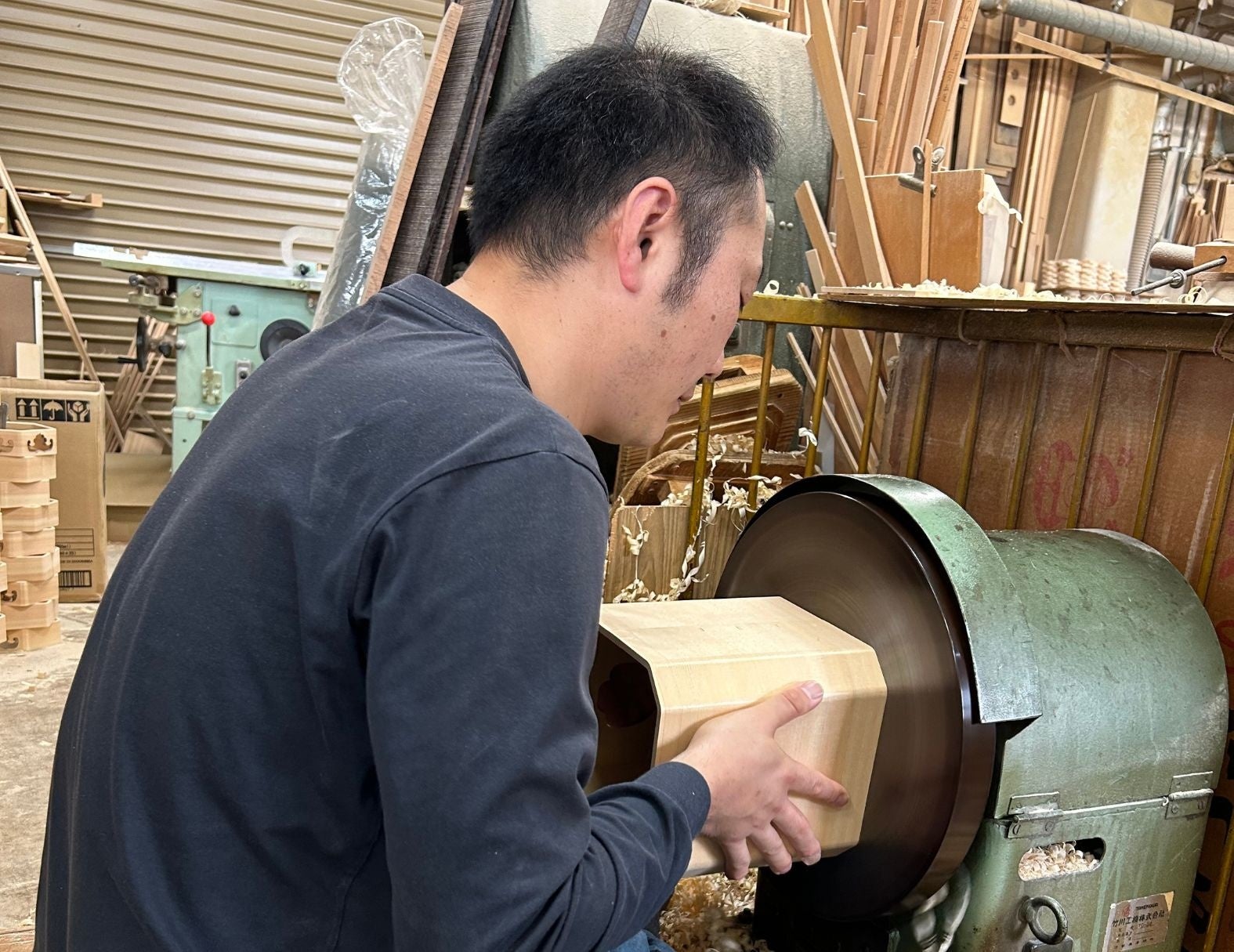 弊社は江戸時代中期から木曽ヒノキを使った「三方」製作に従事しており、私自身は系図をたどると七代目になります。「三方」とは、神道の神事に使われる神饌を載せるための台です。この三方に使用するヒノキ材は、尾張徳川藩にも献上していた木曽谷国有林の天然木曽檜(ひのき)。その材木を使った三方製作過程での副産物です。近年、希少な木材となっていますが、なめらかな手触りや吸湿性、香りのすばらしさを皆様にも知っていただければ幸いと思います。