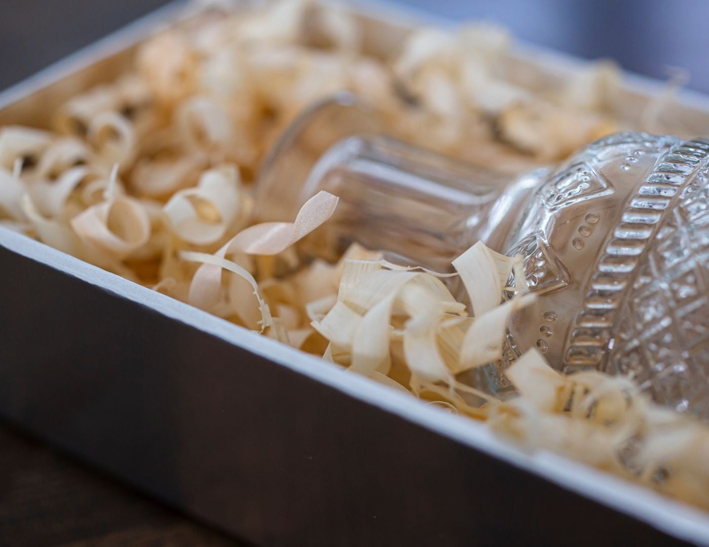 職人であり伝統工芸士の岩田康行さんが手がける三方生産時の副産物のクッション材です。三方に使う材料は、樹齢300年の木曽檜。ご神木の周木として育った厳選の天然木曽檜です。格調高い香りが品物をやさしく包み込みます。クッション材として受け取った人は、香り袋等に再利用できます。