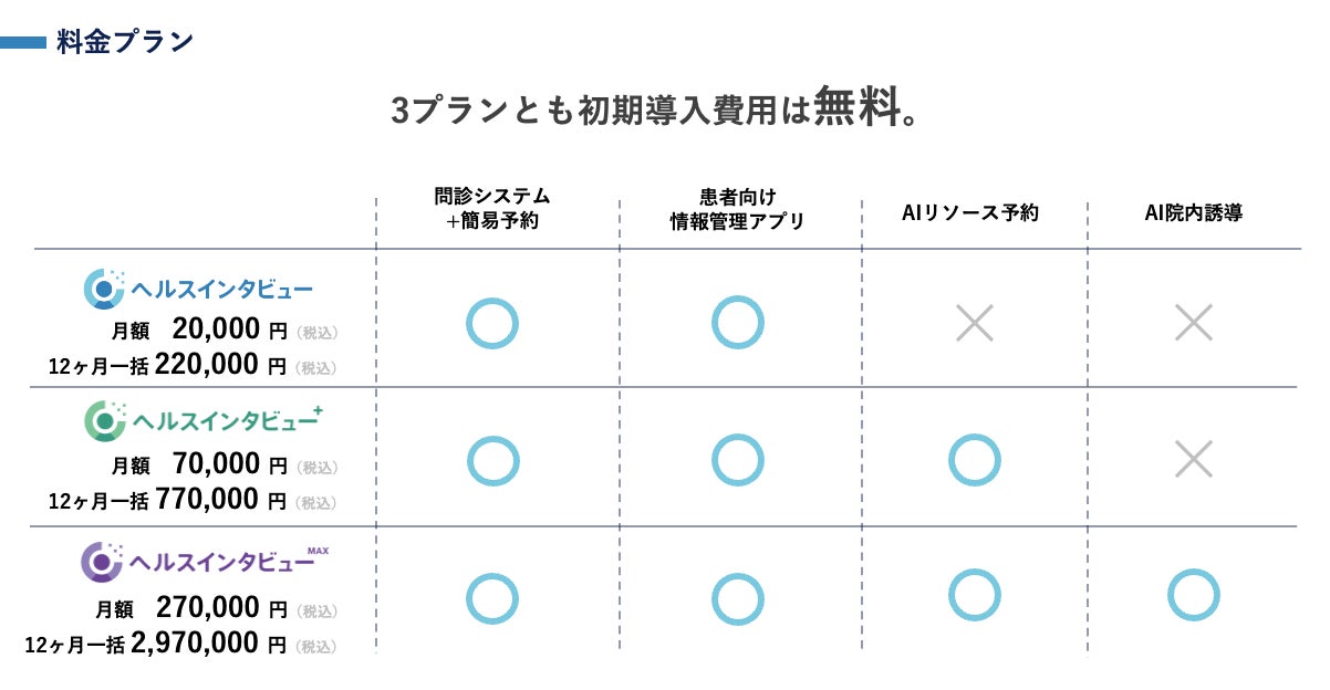 ヘルスインタビューは目的に応じて選べる3プランを展開。