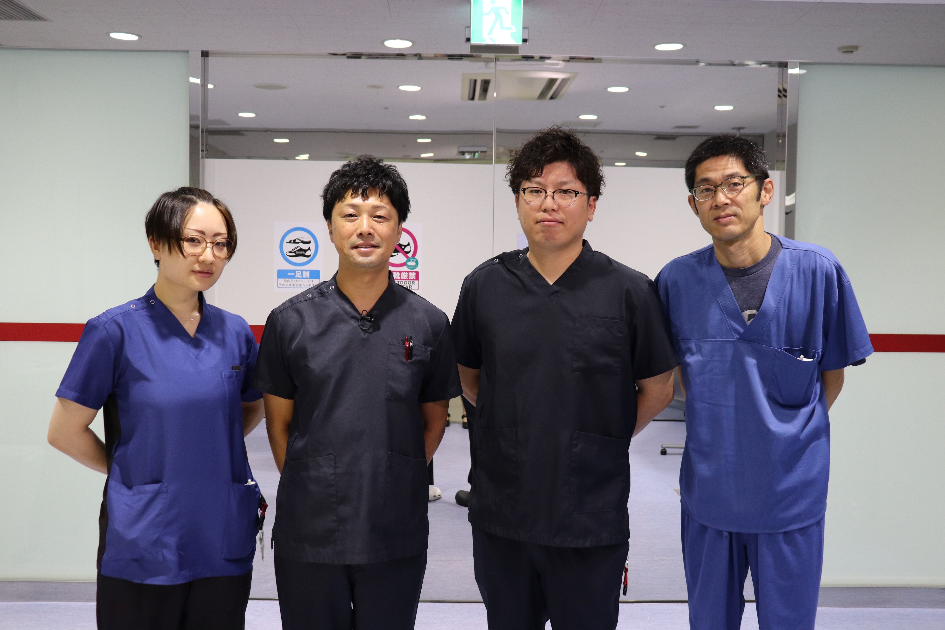 麻酔科所属となる看護師3名と、麻酔科医師の杉本部長(右端)