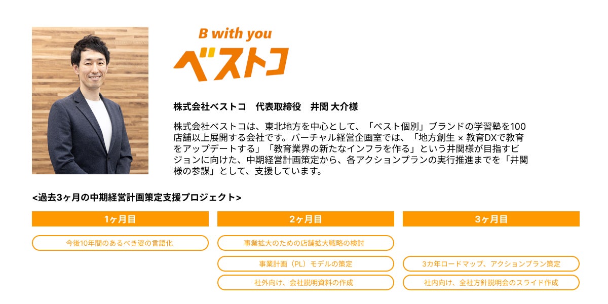 バーチャル経営企画室は、事業をスケールする計画、準備を行う上で非常に有効だと思います。