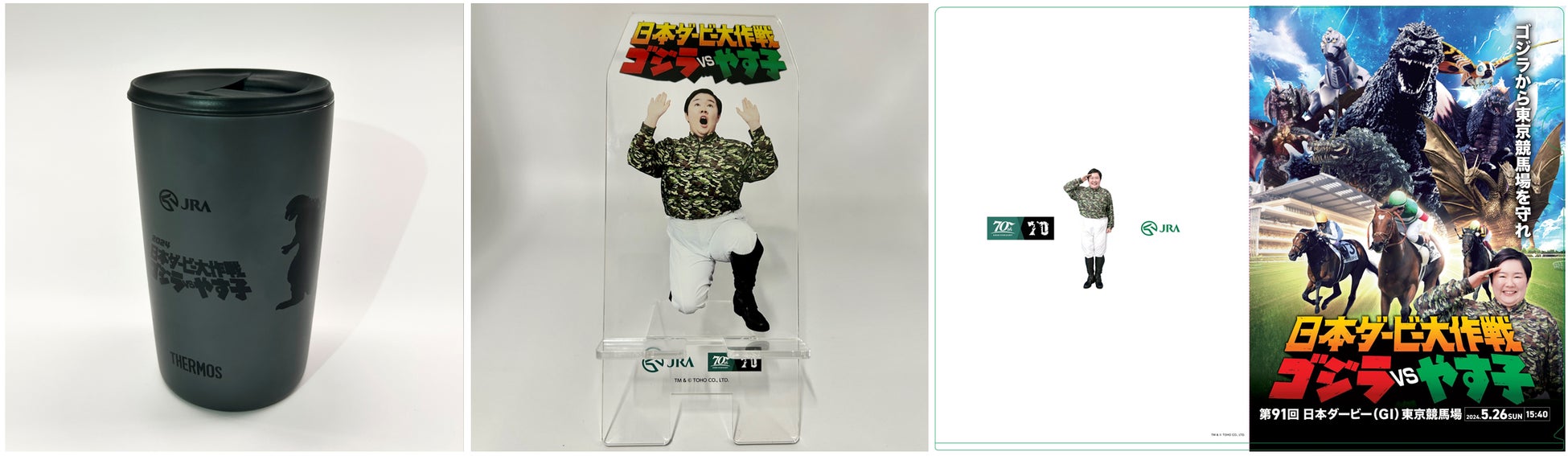 JRA(日本中央競馬会)は、2024年5月26日(日)に開催される第91回 日本ダービーに向けて、ゴジラをはじめとした東宝怪獣とコラボレーションしたキャンペーン『日本ダービー大作戦 ゴジラVSやす子』のリアルイベントを2024年5月21日(火)より順次開始します。