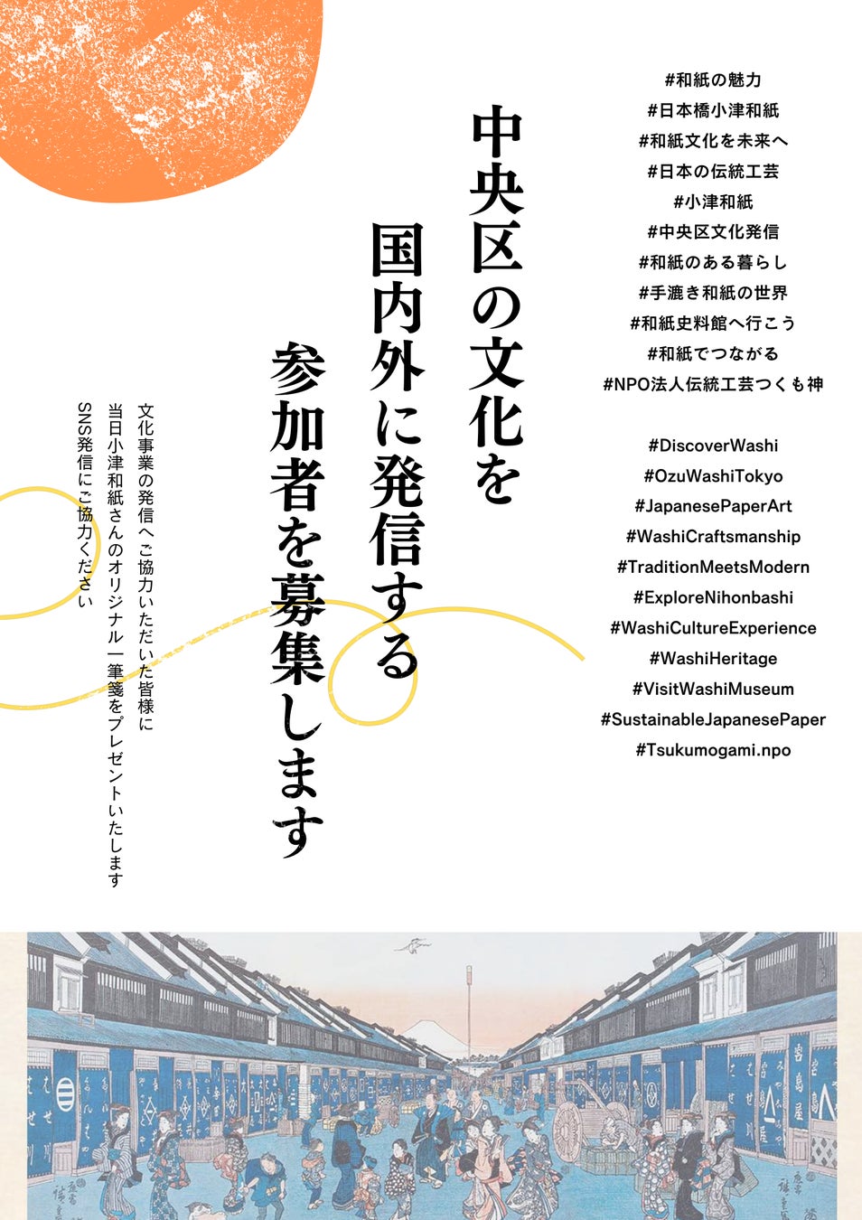 NPO法人伝統工芸つくも神は、2025年3月15日(土) に小津和紙(東京都中央区) にて、中央区の商業文化を支えてきた和紙の歴史を深く学ぶ特別イベント 「和紙の記憶から読み取る」 を開催いたします。本イベントは中央区文化発信事業の一環 として実施され、通常はガラスケース内に展示されている貴重な史料を、学芸員の解説とともに間近でご覧いただける貴重な機会です。