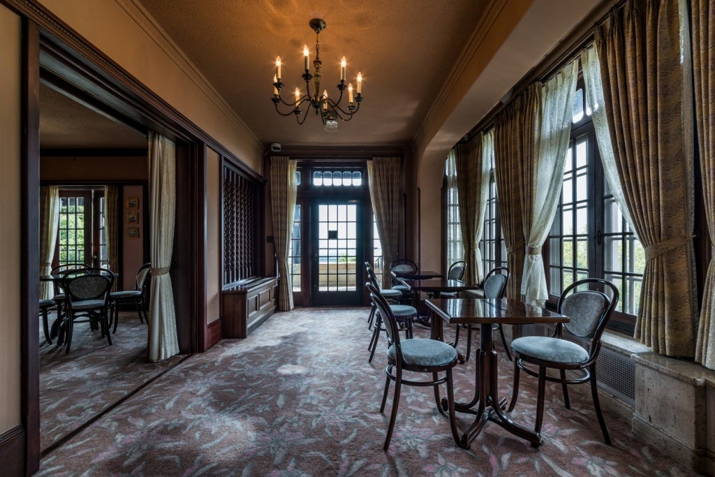 本館2階の喫茶室には、室内席とテラス席があり、テラスからは雄大な眺望を楽しんでいただけます。