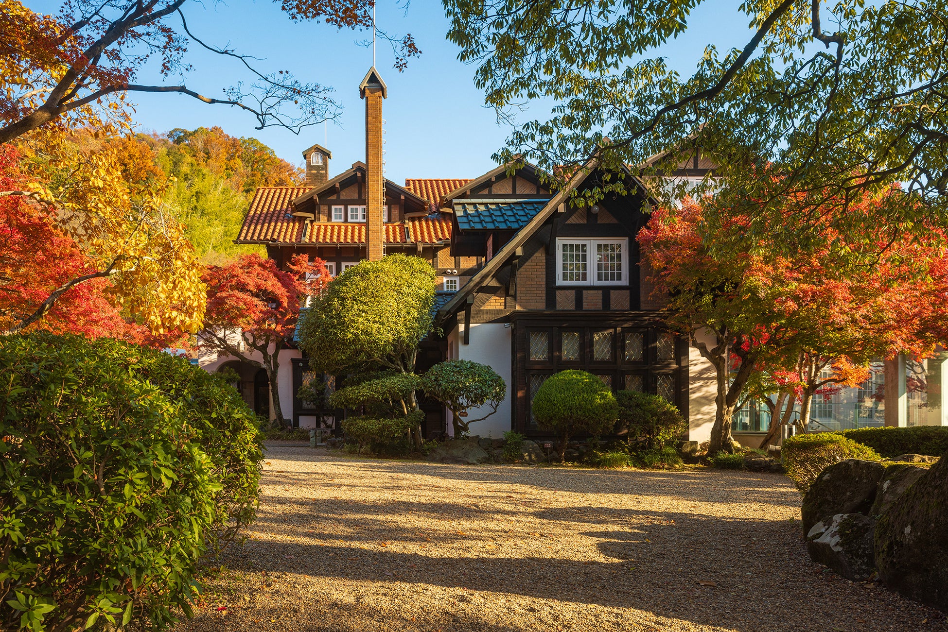 関西の実業家・加賀正太郎(1888-1954)の別荘として、大正から昭和にかけ建設された英国風の洋館「大山崎山荘」が美術館の本館になっています。