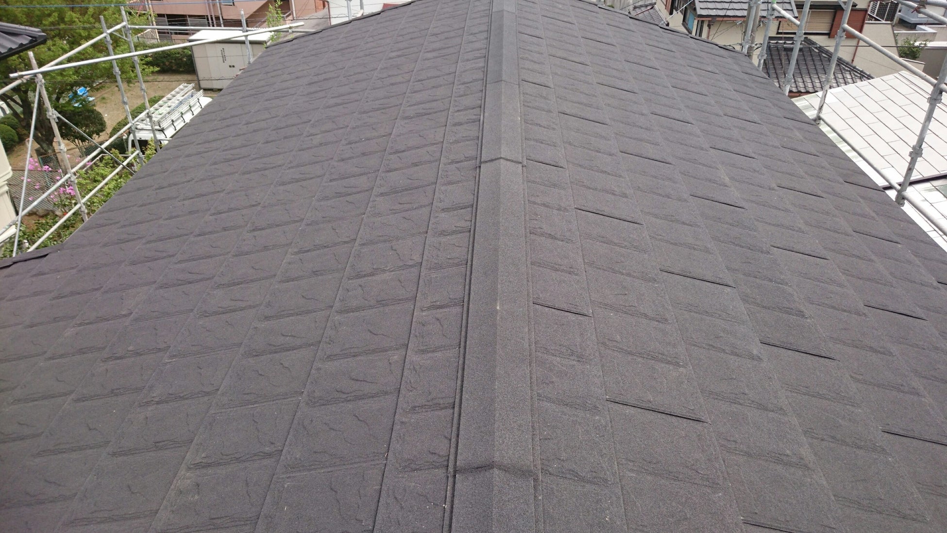 こうした課題に対応するために注目されているのが、「屋根カバー工法」です。既存の平板スレート屋根(コロニアル)に新たな屋根材を“かぶせるだけ”で施工でき、廃材の処理や撤去費用を抑えられます。工期や費用も抑えられる上、高い耐久性・防音性・断熱性を備えた屋根リフォームが実現できます。