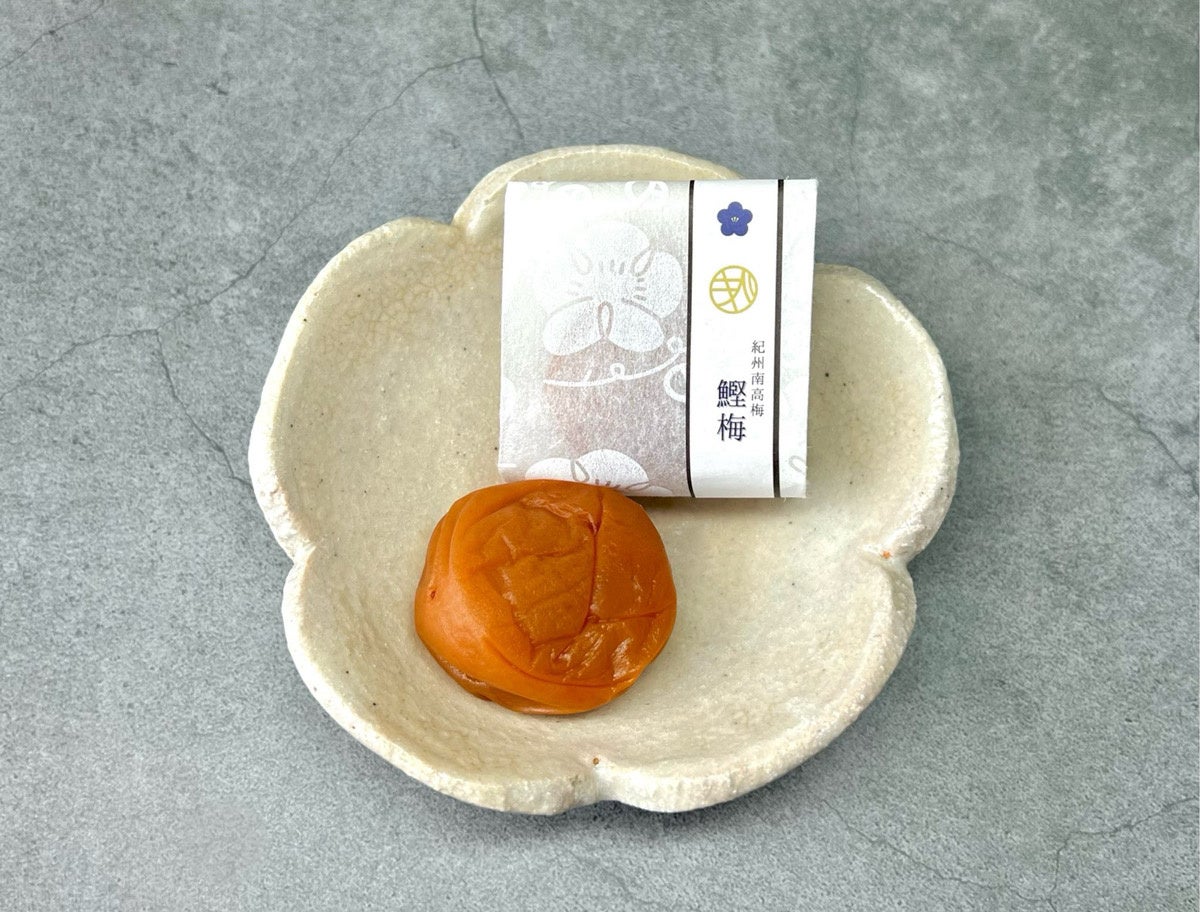 鰹梅(塩分6%)は、海の幸の深い味わい、旨味、甘み、酸味のバランスがとれた調味梅干しです。ほんのりとした鰹の風味が口の中に広がります。
