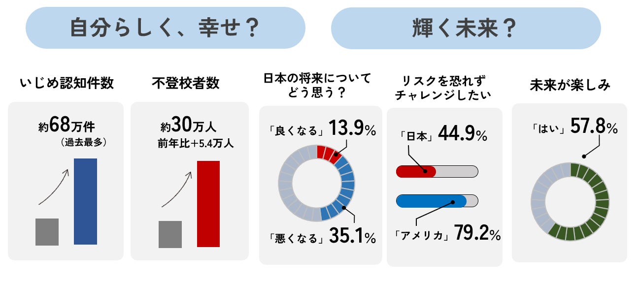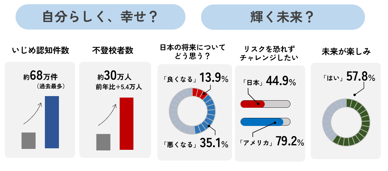 日本の将来が「よくなる」と思うこどもはたった13%と、こどもたちが未来に希望をもてなくなっています。