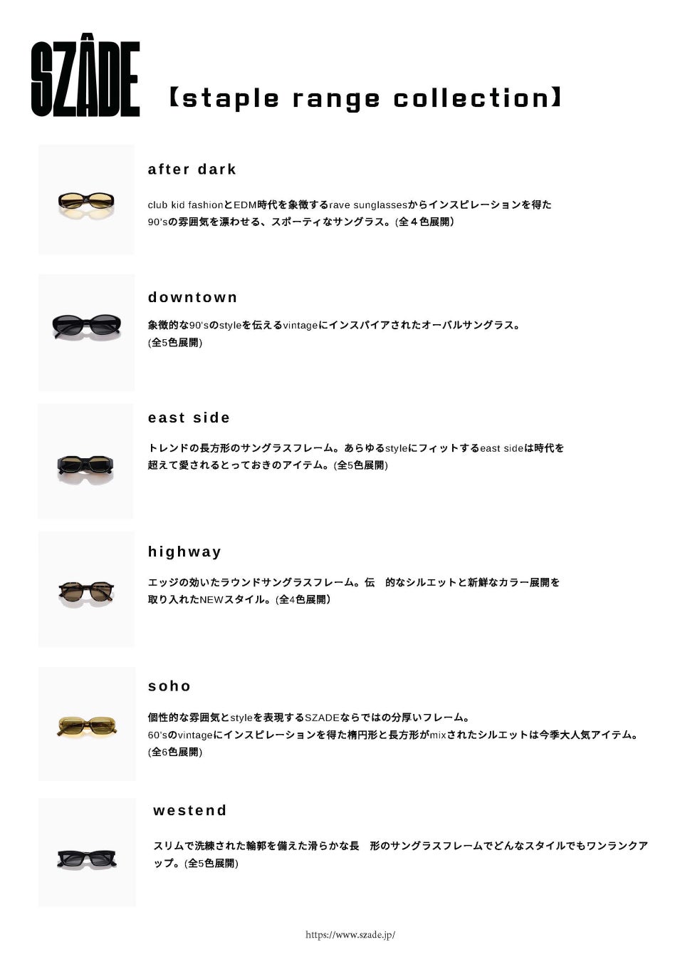 オーストラリア、メルボルン発のリサイクルアイウェアブランド。ファッションとのカルチャーをりれたトレンドのシルエットとサステナビリティに拘り抜いた『SZADE』からNEWコレクション"staple range"が登場。