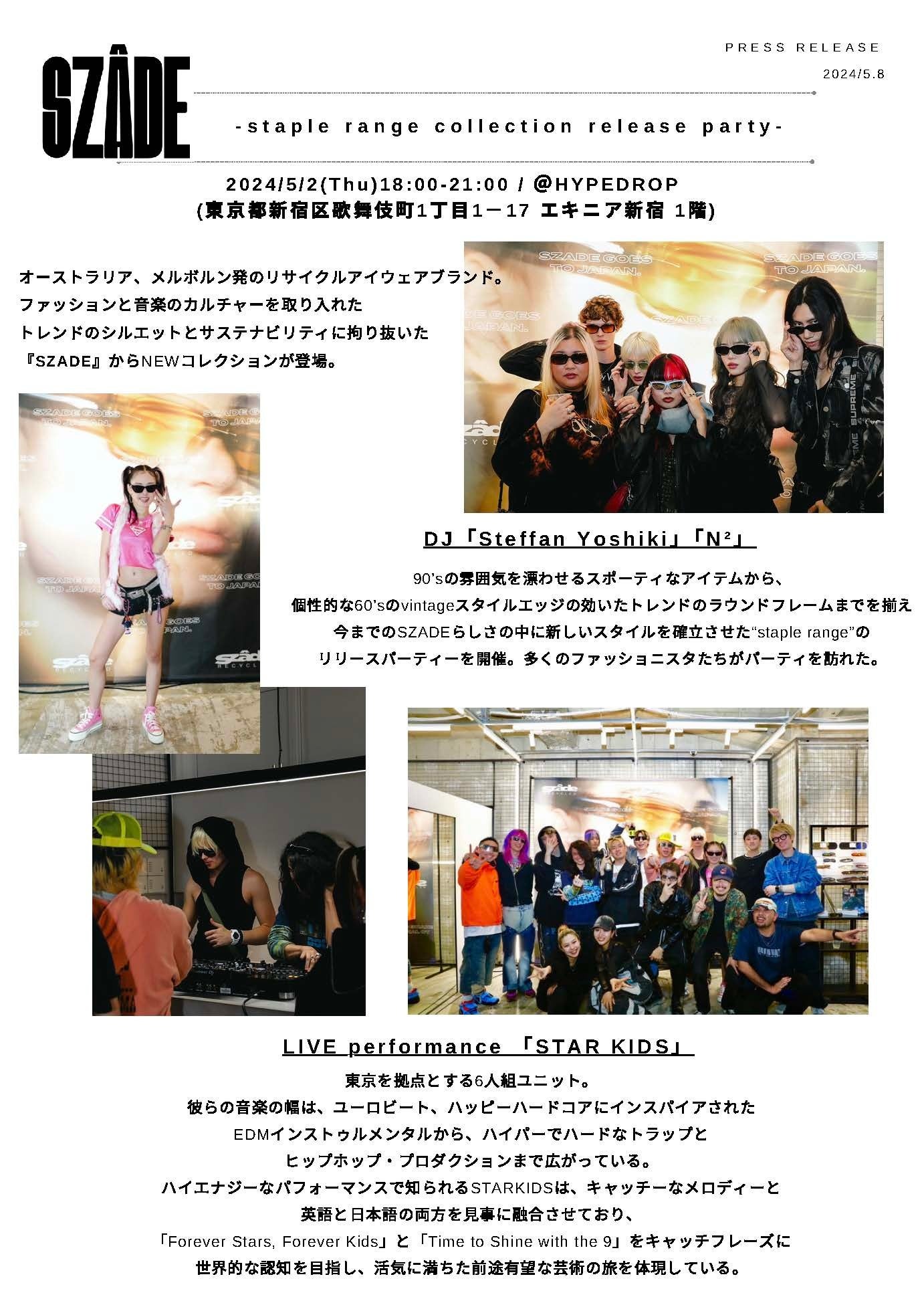 SZADEからnew collectionのリリースを記念したパーティがHYPEDROP新宿店で開催