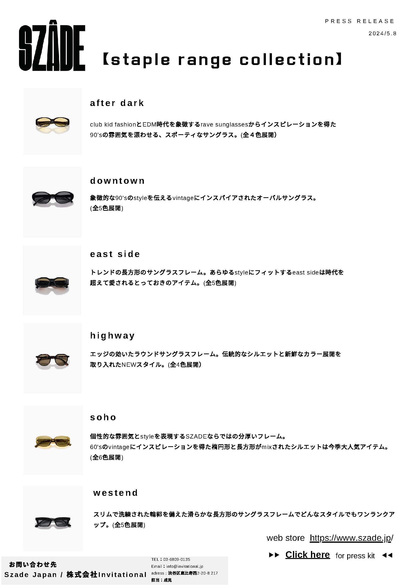 90’sの雰囲気を漂わせるスポーティなアイテムから、個性的な60’sのvintageスタイルエッジの効いたトレンドのラウンドフレームまでを揃え、今までのSZADEらしさの中に新しいスタイルを確立させた“staple range”のリリースパーティーが5/2にHypedrop新宿店にて開催された。