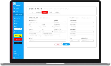 シルクラウドでは、インフルエンサーやタレントの各SNSフォロワーデータ(年齢・性別・エリアなど)を分析し、広告主のターゲットに最適な人材の検索、リスト化をすることが可能です。