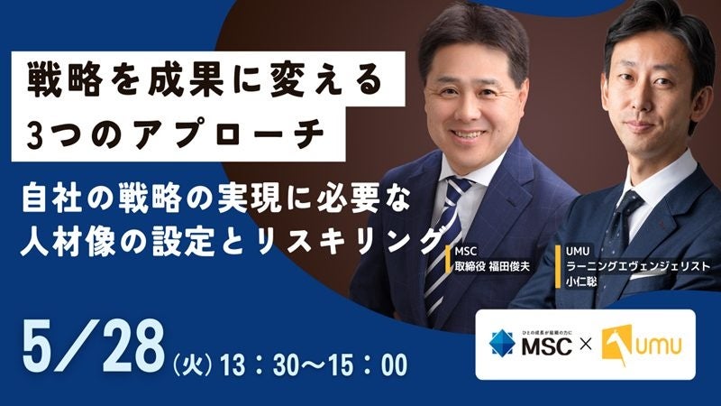 企業の人材戦略・育成を共に考えるMSC×UMU社との共催オンラインセミナー「戦略を成果に変える3つのアプローチ」開催のお知らせ