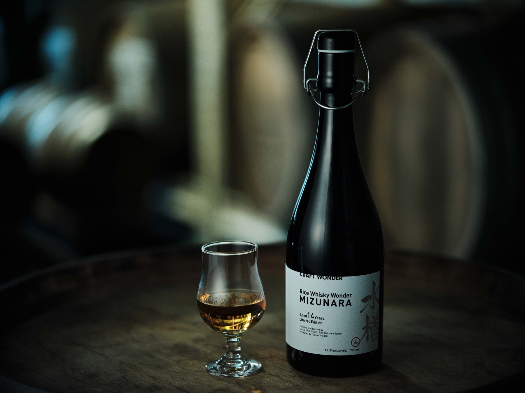 日本唯一の亜熱帯気候の地である沖縄で、早期熟成を重ねた「Rice Whisky Wonder MIZUNARA Aged 14 years Limited Edition」を1,500本限定で発売