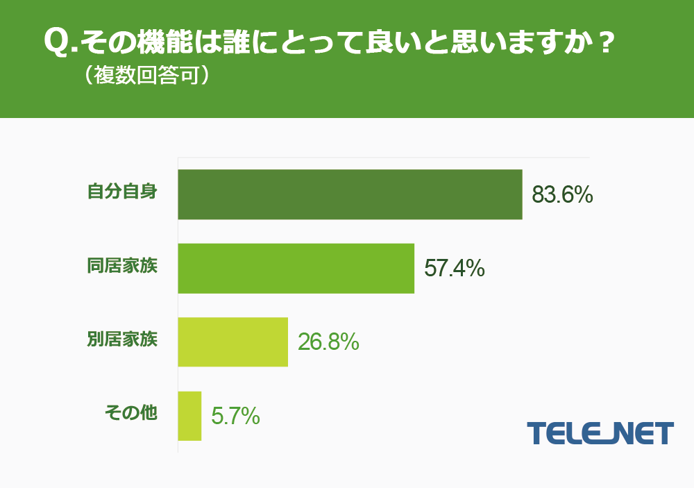「自分自身」や「同居家族」、「別居家族」それぞれに特にうれしいと思う機能と一緒に理由を聞いてみたので、一部を紹介します。