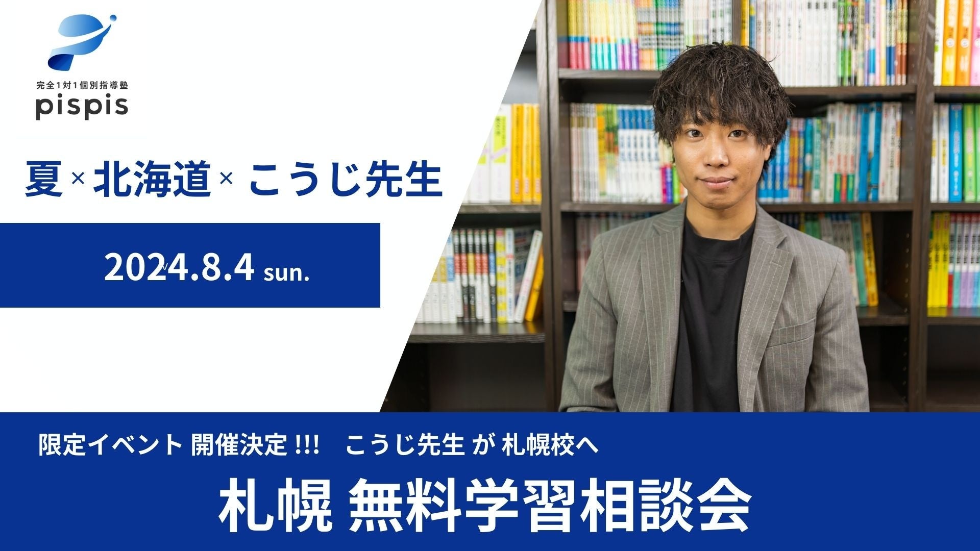 15万人の登録者を持つ、大学受験pispis塾長 兼 教育系Youtuberこうじ先生が【大学受験pispis札幌校】のOPENを記念し、札幌で無料相談会を開催します!!
