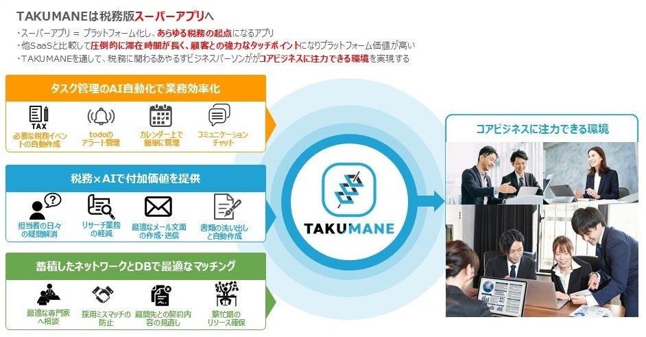 「TAKUMANE」は、税務に係る皆様がより戦略的な業務に集中し、顧問先との関係を強化するための強力なパートナーです。