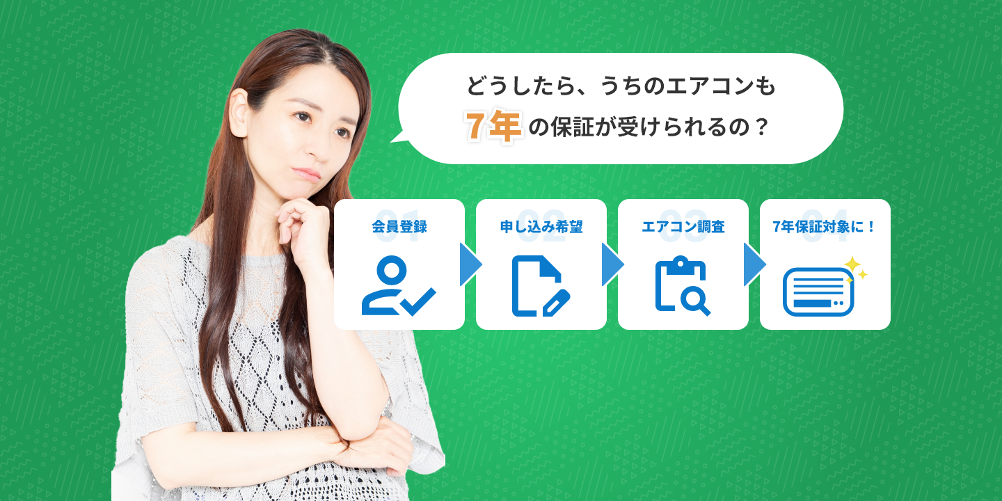 保証条件は無償のエアコン診断を受け、正常に稼働していることを確認させていただくことだけ!保証料、点検料は一切必要ございません!
