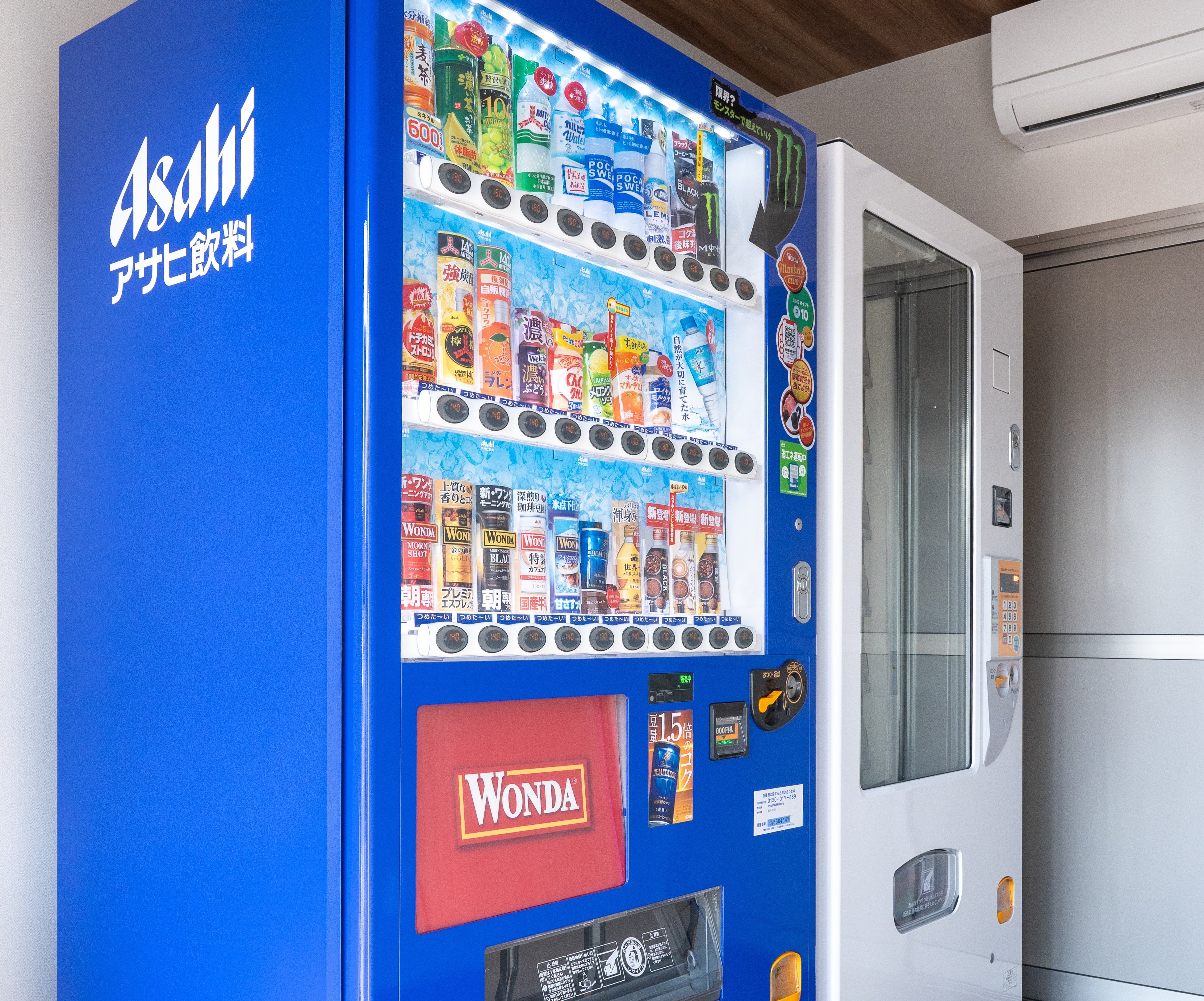客室中央のインフォメーション棟では自動販売機にてお飲み物、軽食も販売しております。