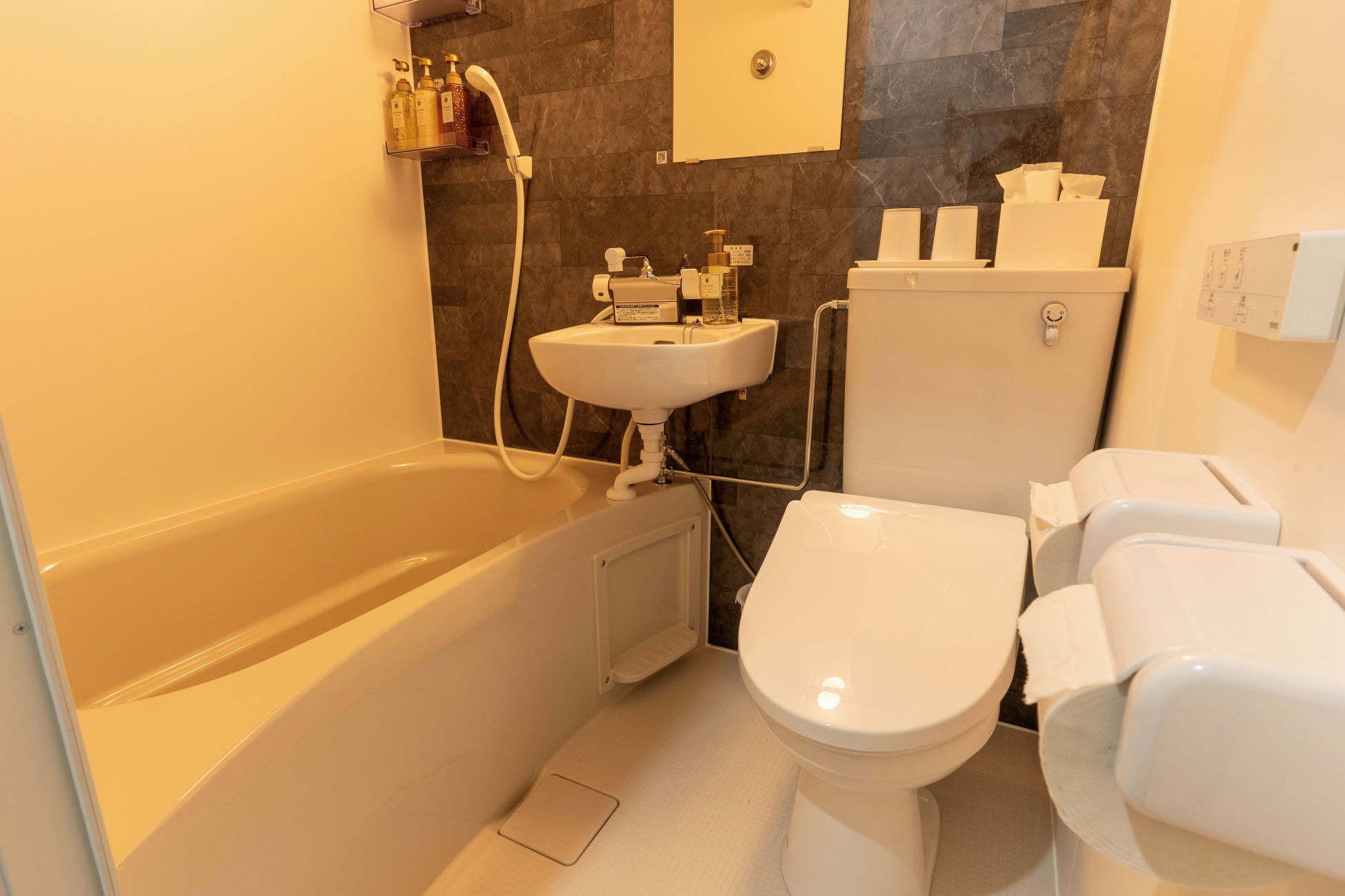 ユニットバスを全客室に完備、アメニティも揃っているので身軽にご利用いただけます。