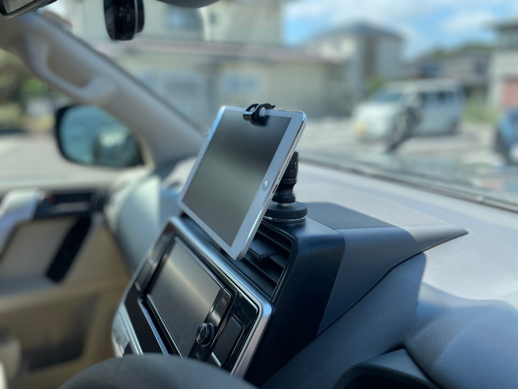 シリコン吸盤で強力にホールドしますので車の揺れでも全く問題ありません。