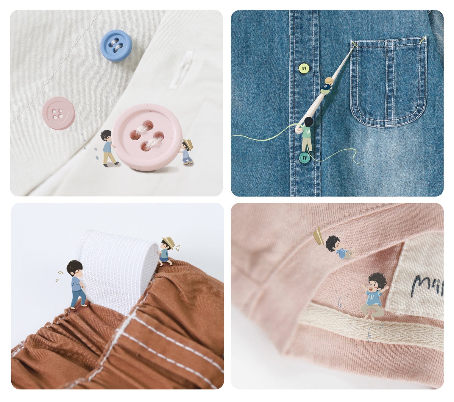 これが本子供服ブランドの最大の特徴で、着心地と安全性の開発を前提とした上で、プリント、刺繍、文字アップリケなどの細部にまで注力しています。