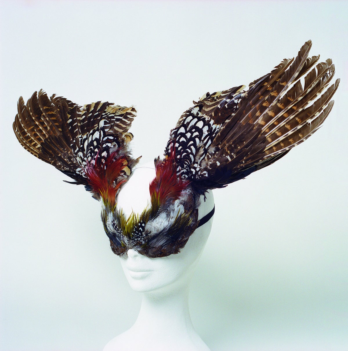 加茂克也は1990年代後半より数々のトップブランドのコレクションでヘアメイクを歴任しました。通常、ショーで使用するヘッドピースは一回性のものですが、加茂はショーの後、自作のヘッドピースを手元に集めて1点ずつ撮影し、225点を選んで作品集『KAMO HEAD』(2021 年発行)にまとめ、発表しました。本展では、『KAMO HEAD』に掲載されたものを中心に約200点のヘッドピースを展示します。