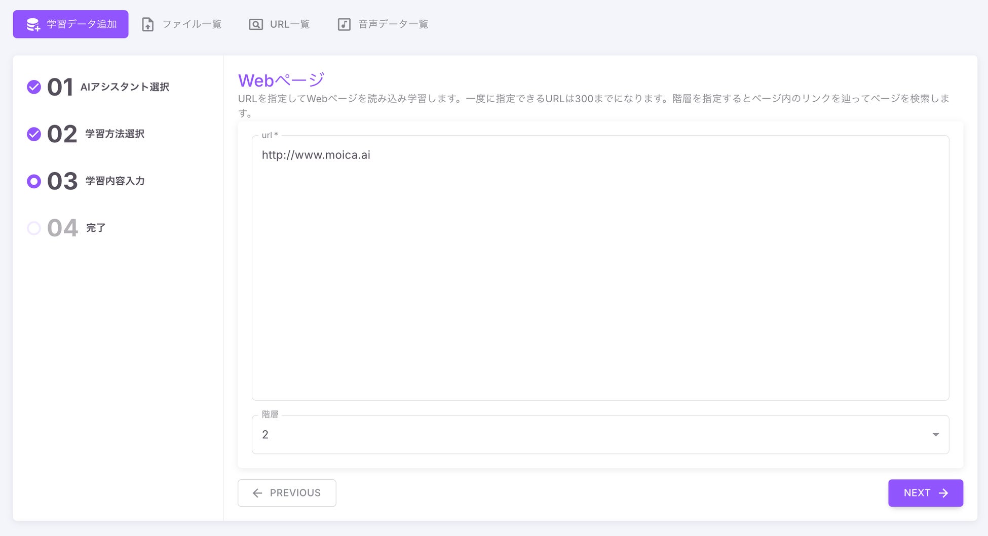 URLを指定するだけでWebページのコンテンツを学習できます。