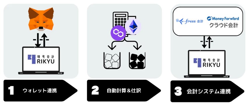 暗号会計RIKYUは、複雑な暗号資産会計を簡素化する革新的なプラットフォームです。3つの簡単なステップで、企業は効率的な暗号資産会計管理を実現できます。公式サイト(https://rikyu.io/)よりまずは無料版をお試しください。